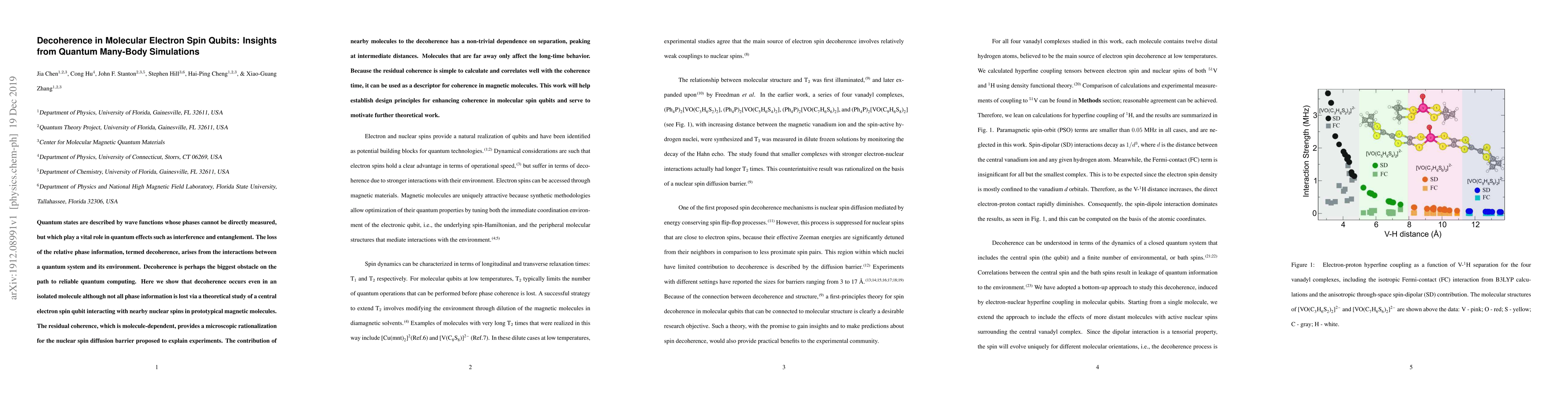 Quantum states are described by wave functions whose phases cannot be directly measured, but which play a vital role in quantum effects such as interference and entanglement. The loss of the relative phase information, termed decoherence, arises from the interactions between a quantum system and its environment. Decoherence is perhaps the biggest obstacle on the path to reliable quantum computing. Here we show that decoherence occurs even in an isolated molecule although not all phase information is lost via a theoretical study of a central electron spin qubit interacting with nearby nuclear spins in prototypical magnetic molecules. The residual coherence, which is molecule-dependent, provides a microscopic rationalization for the nuclear spin diffusion barrier proposed to explain experiments. The contribution of nearby molecules to the decoherence has a non-trivial dependence on separation, peaking at intermediate distances. Molecules that are far away only affect the long-time behavior. Because the residual coherence is simple to calculate and correlates well with the coherence time, it can be used as a descriptor for coherence in magnetic molecules. This work will help establish design principles for enhancing coherence in molecular spin qubits and serve to motivate further theoretical work.