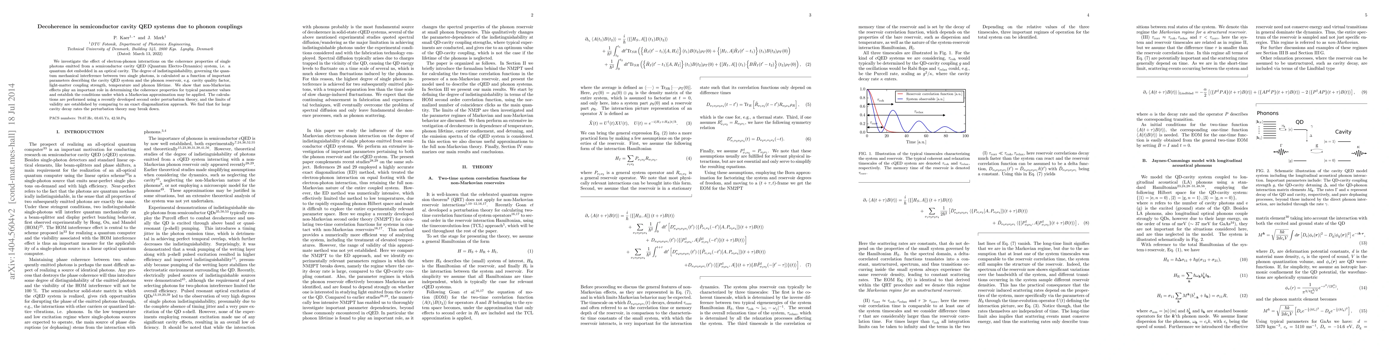 This paper examines the impact of electron-phonon interactions on the coherence of single photons in semiconductor cavity QED systems, finding that non-Markovian effects significantly affect coherence properties. The study uses second-order perturbation theory to determine the degree of indistinguishability, showing that the perturbation theory may fail for large cavity decay rates.