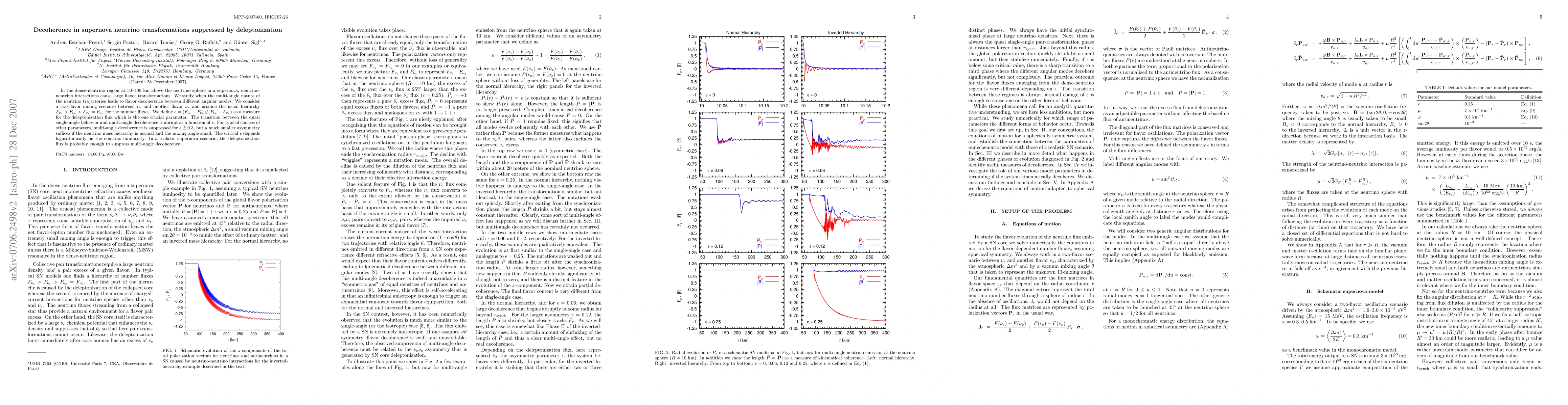 This paper investigates how deleptonization in supernovae affects neutrino flavor transformations, finding that multi-angle decoherence is suppressed when the deleptonization flux exceeds 0.3. The suppression is more effective for normal neutrino mass hierarchies and small mixing angles.