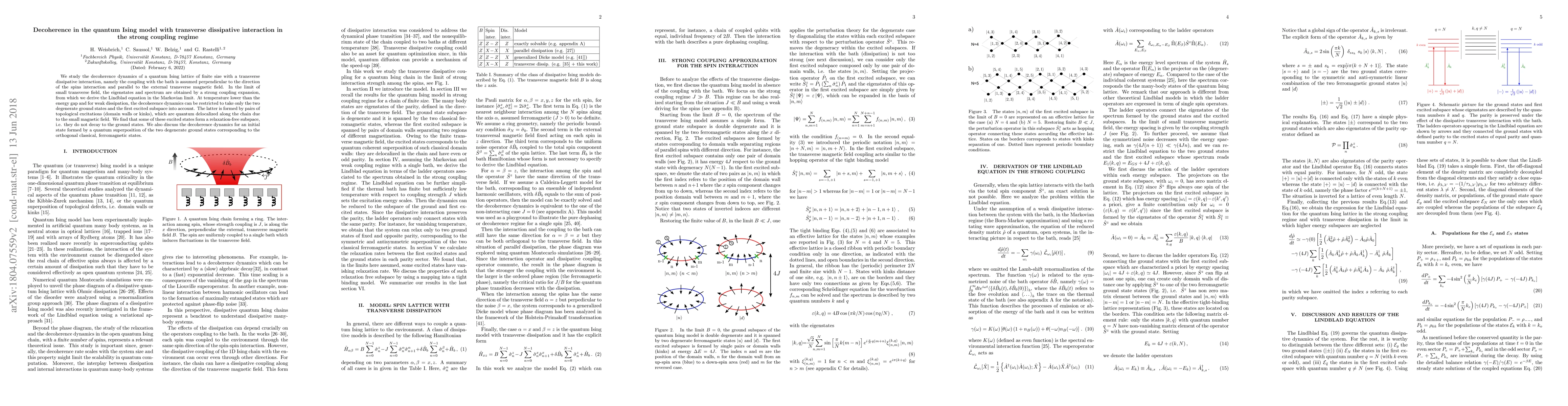 This paper studies decoherence dynamics in a quantum Ising model with a transverse dissipative interaction, finding that some excited states form a relaxation-free subspace and remain stable under weak dissipation and at low temperatures.