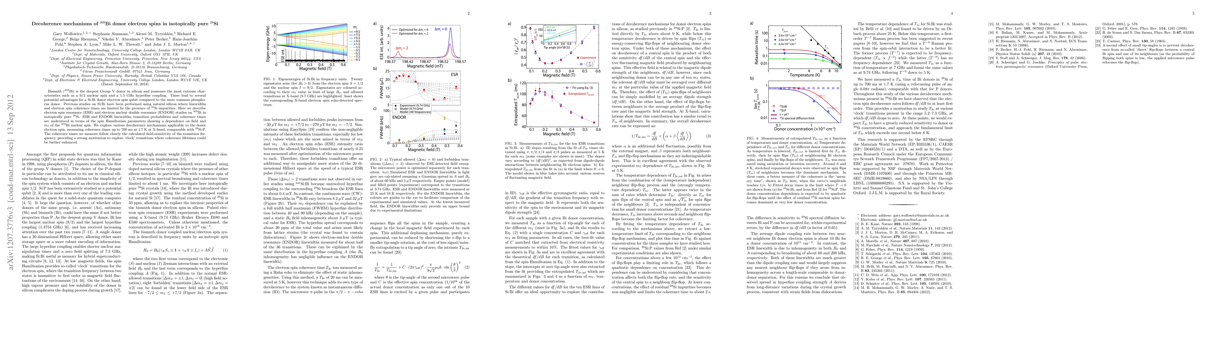 Researchers studied 209Bi donor electron spins in silicon to improve qubit coherence times, finding up to 700 ms coherence at 1.7 K, comparable to phosphorus donors.