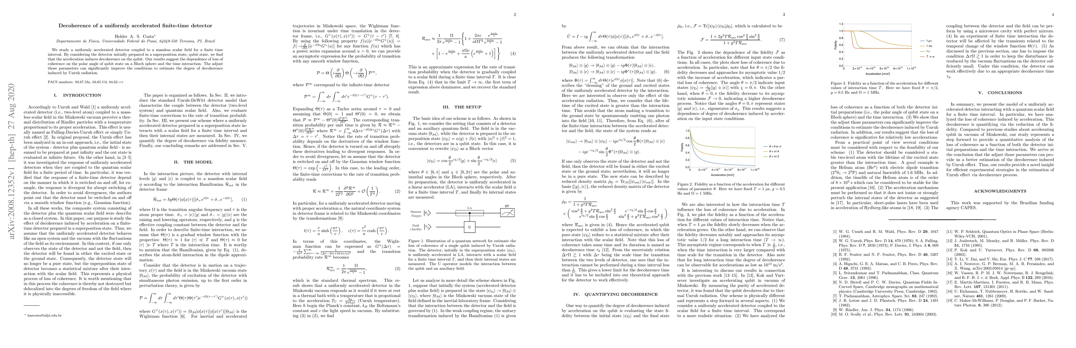 We study a uniformly accelerated detector coupled to a massless scalar field for a finite time interval. By considering the detector initially prepared in a superposition state, qubit state, we find that the acceleration induces decoherence on the qubit. Our results suggest the dependence of loss of coherence on the polar angle of qubit state on a Bloch sphere and the time interaction. The adjust those parameters can significantly improve the conditions to estimate the degree of decoherence induced by Unruh radiation.