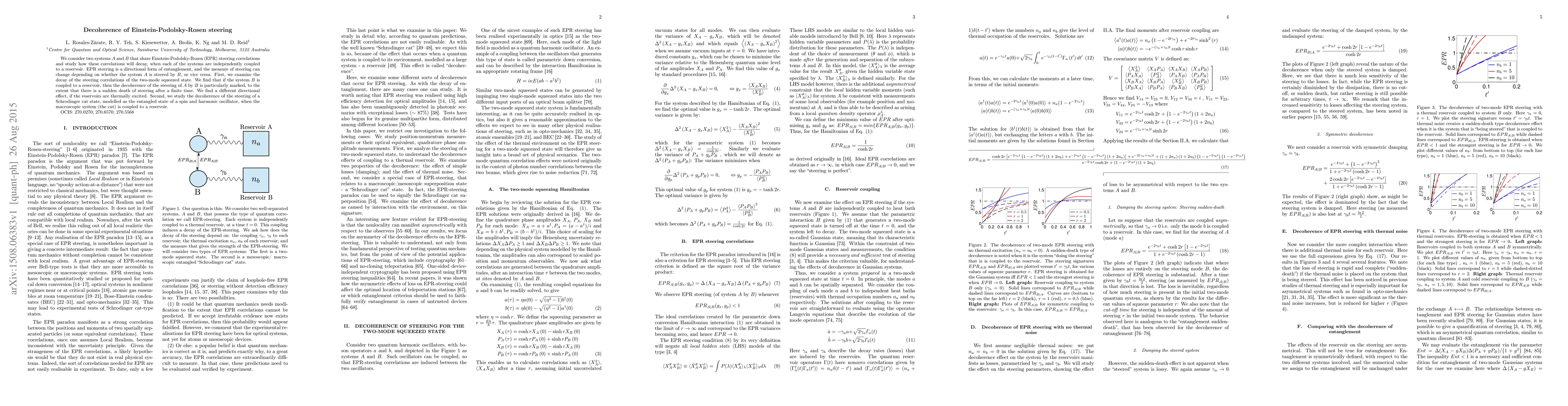 This paper investigates the decay of Einstein-Podolsky-Rosen (EPR) steering correlations in two-mode squeezed and Schrödinger cat states when each system is coupled to a reservoir. It finds that steering decoherence is particularly pronounced when the system B is coupled to a reservoir, leading to a sudden death of steering for system A by B.