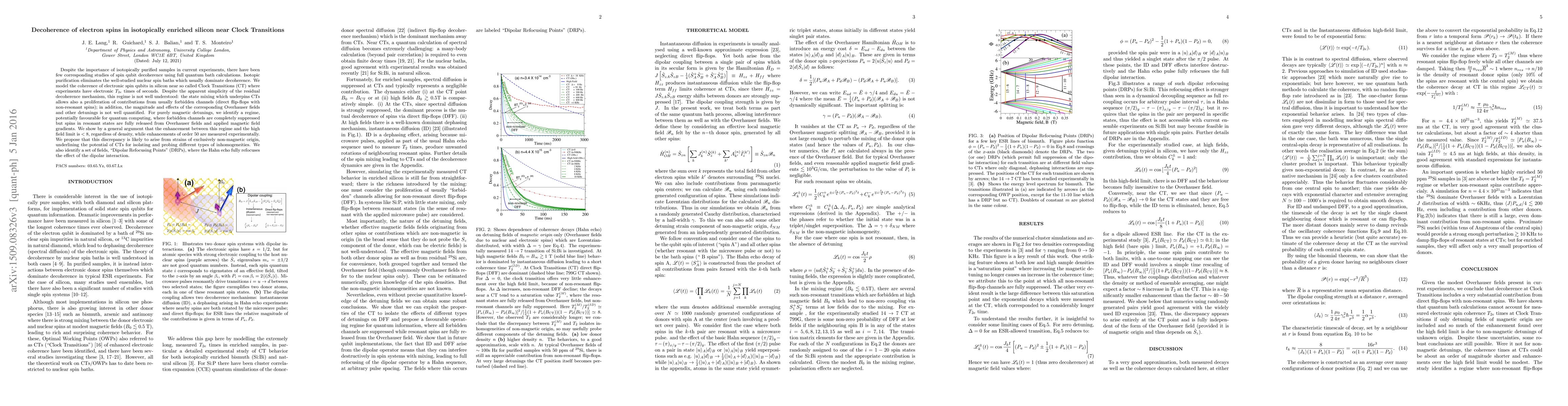 Researchers studied decoherence of electron spins in silicon near clock transitions, finding a favorable regime for quantum computing where forbidden channels are suppressed and resonant spins are fully released from Overhauser fields.