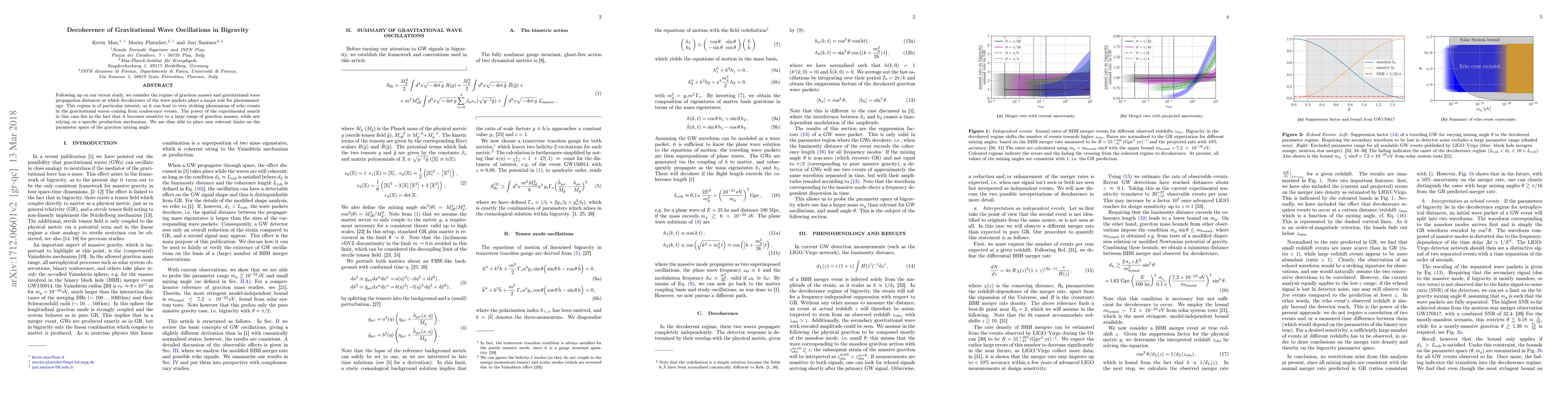 This paper investigates the decoherence of gravitational wave oscillations in the context of bigravity, focusing on graviton masses and propagation distances that highlight echo phenomena from coalescence events. It demonstrates the experimental sensitivity to a broad range of graviton masses, thereby setting new limits on the graviton mixing angle parameter space.
