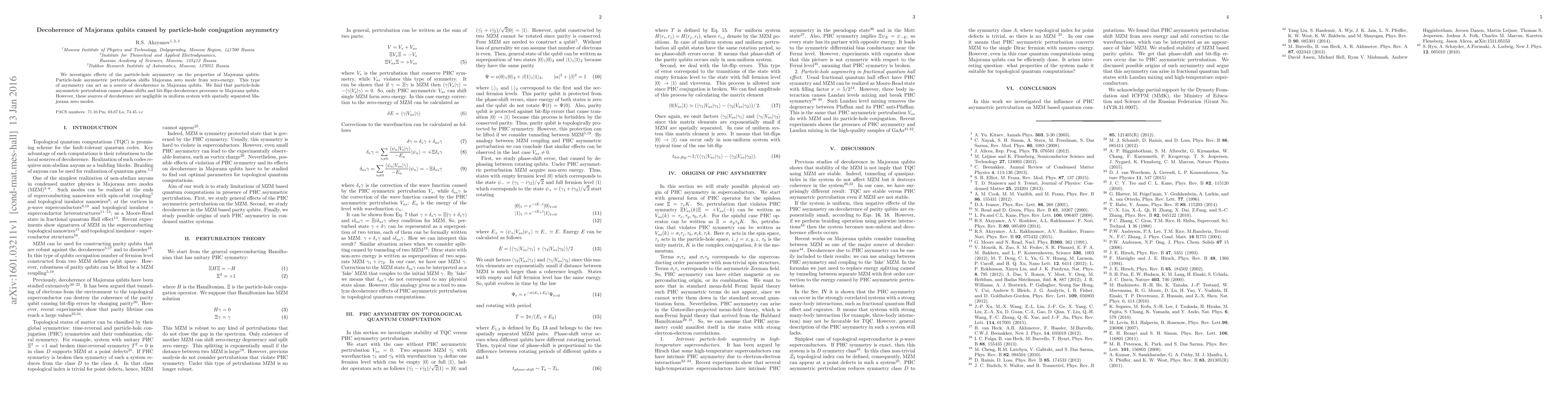 This study examines how particle-hole asymmetry affects Majorana qubits, finding that asymmetric perturbations shift the zero-energy Majorana mode and cause decoherence via phase-shifts and bit-flips. The research concludes that such decoherence is minimal in uniform systems with spatially separated Majorana zero modes.