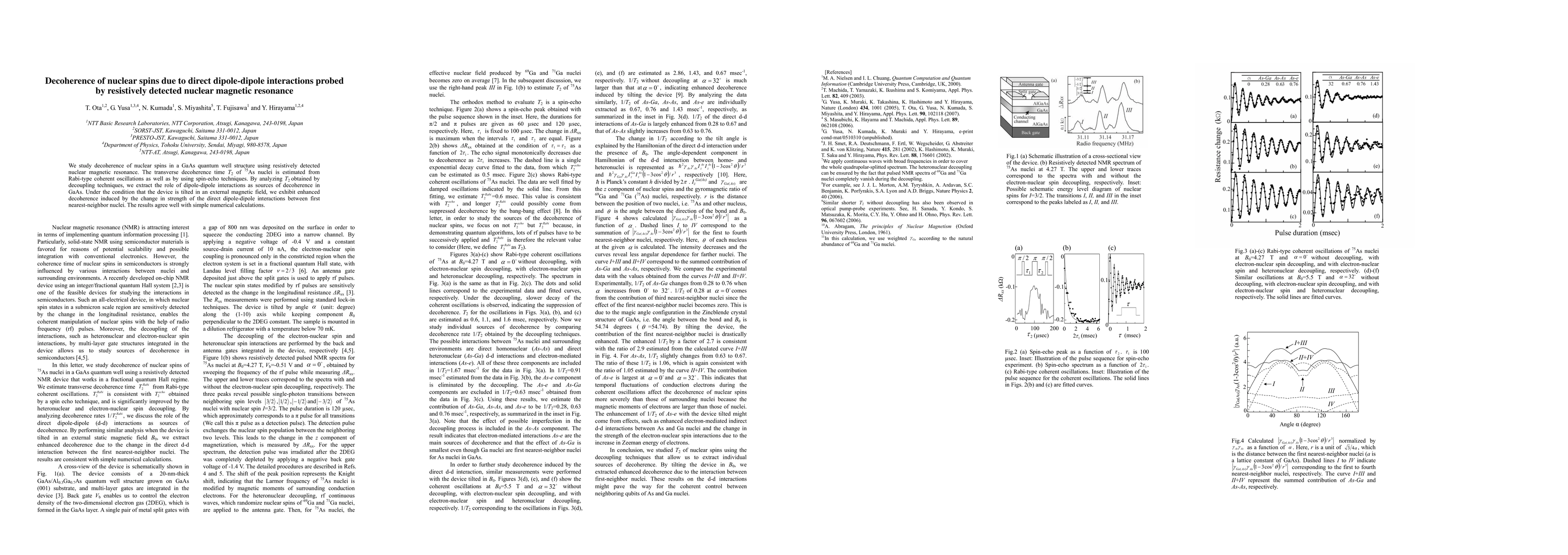 We study decoherence of nuclear spins in a GaAs quantum well structure using resistively detected nuclear magnetic resonance. The transverse decoherence time T2 of 75As nuclei is estimated from Rabi-type coherent oscillations as well as by using spin-echo techniques. By analyzing T2 obtained by decoupling techniques, we extract the role of dipole-dipole interactions as sources of decoherence in GaAs. Under the condition that the device is tilted in an external magnetic field, we exhibit enhanced decoherence induced by the change in strength of the direct dipole-dipole interactions between first nearest-neighbor nuclei. The results agree well with simple numerical calculations.