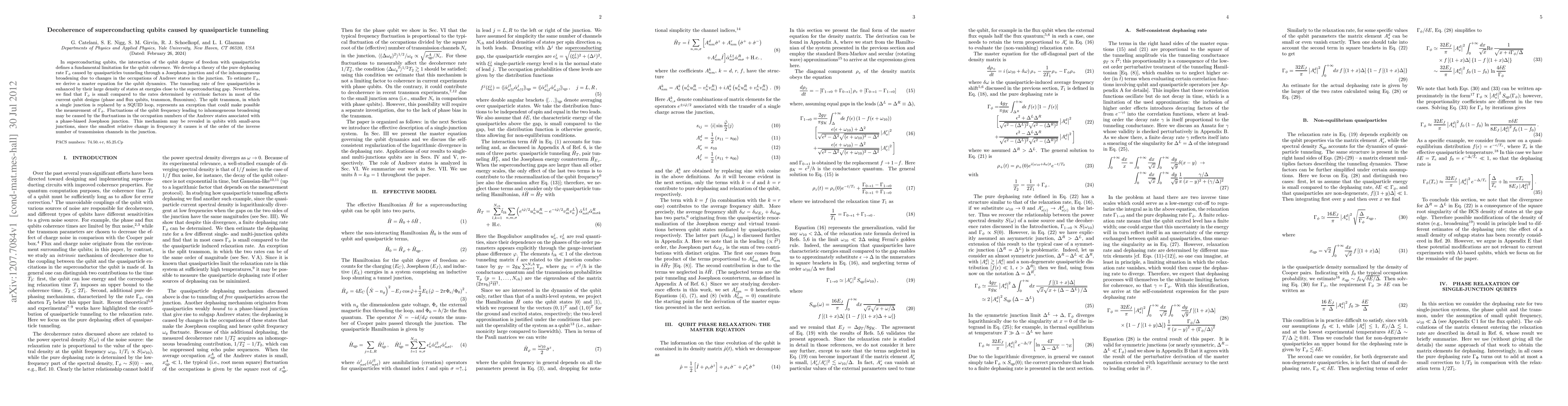 The study highlights the importance of quasiparticle tunneling in superconducting qubits and its impact on decoherence.