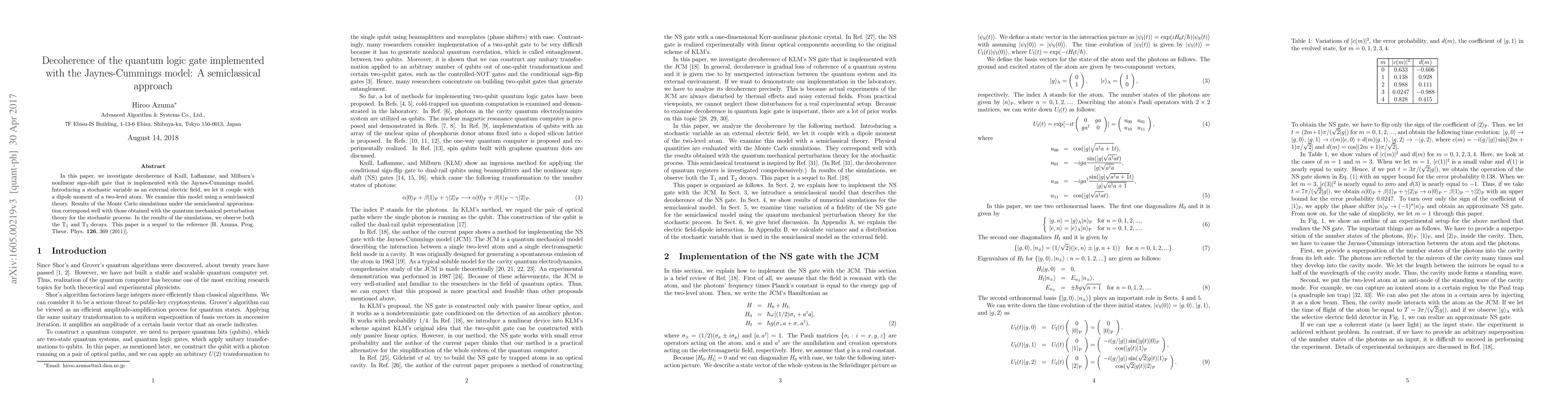 In this paper, we investigate decoherence of Knill, Laflamme, and Milburn's nonlinear sign-shift gate that is implemented with the Jaynes-Cummings model. Introducing a stochastic variable as an external electric field, we let it couple with a dipole moment of a two-level atom. We examine this model using a semiclassical theory. Results of the Monte Carlo simulations under the semiclassical approximation correspond well with those obtained with the quantum mechanical perturbation theory for the stochastic process. In the results of the simulations, we observe both the $\mbox{T}_{1}$ and $\mbox{T}_{2}$ decays. This paper is a sequel to the reference [H.~Azuma, Prog. Theor. Phys. {\bf 126}, 369 (2011)].