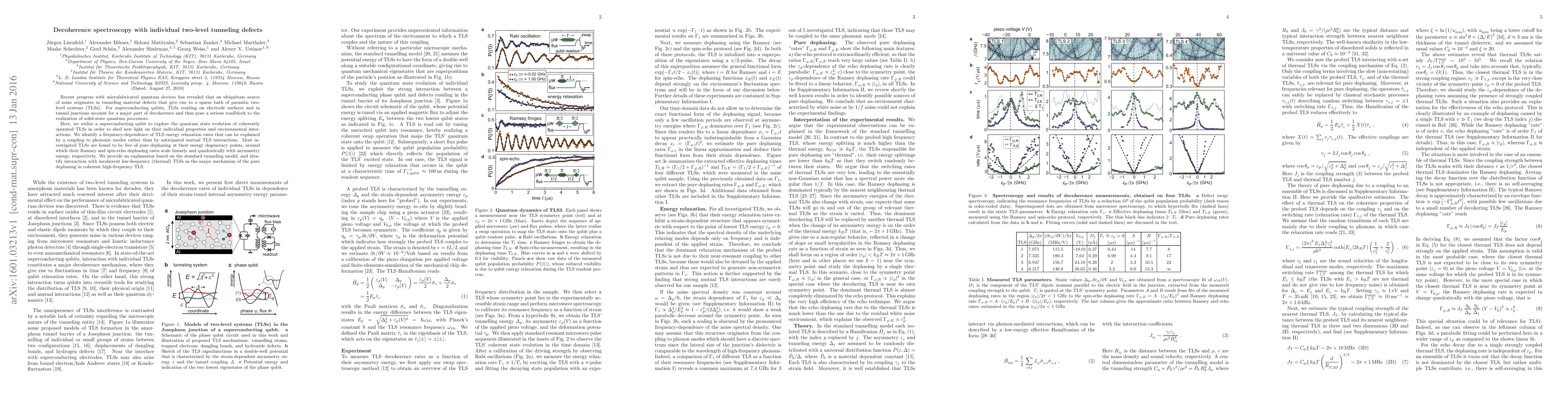 This paper investigates the impact of tunneling material defects, or two-level systems (TLSs), on superconducting qubits' decoherence using a superconducting qubit to study TLSs' quantum state evolution. The study finds that TLSs' relaxation rates depend on phononic coupling and that pure dephasing is primarily due to interactions with lower-frequency TLSs, not mutual TLS interactions.