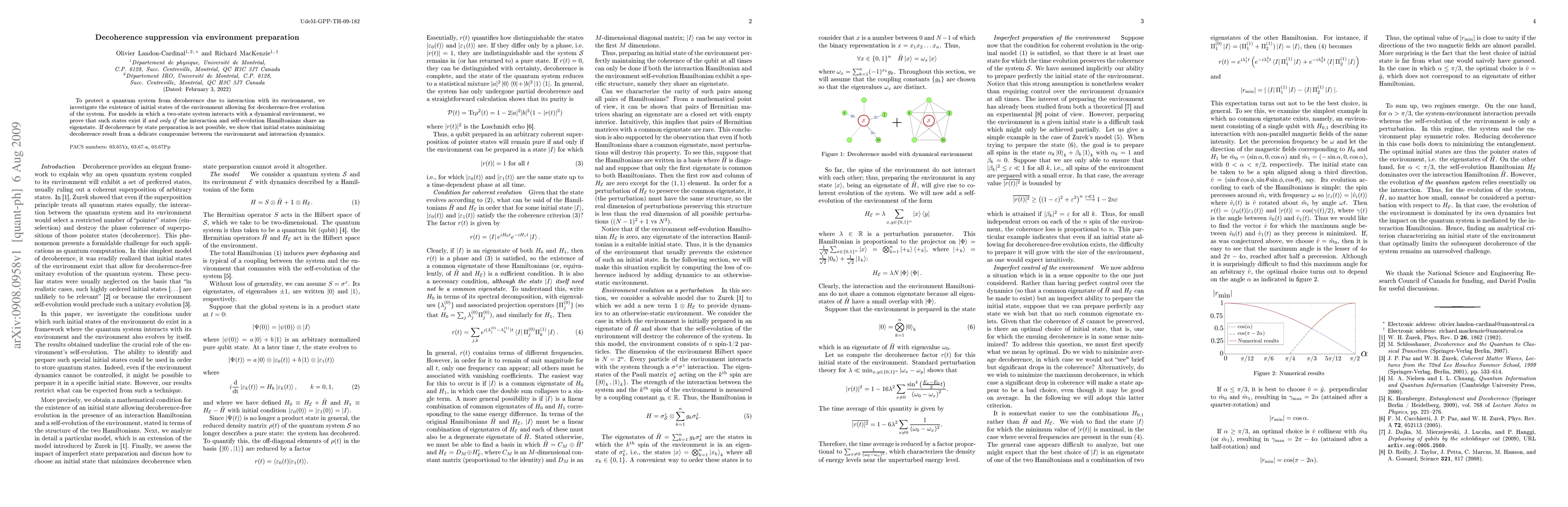 This paper explores initial states of the environment that can suppress decoherence in quantum systems, proving their existence when the interaction and self-evolution Hamiltonians share an eigenstate. It also demonstrates that minimizing decoherence requires a careful balance between environment and interaction dynamics.
