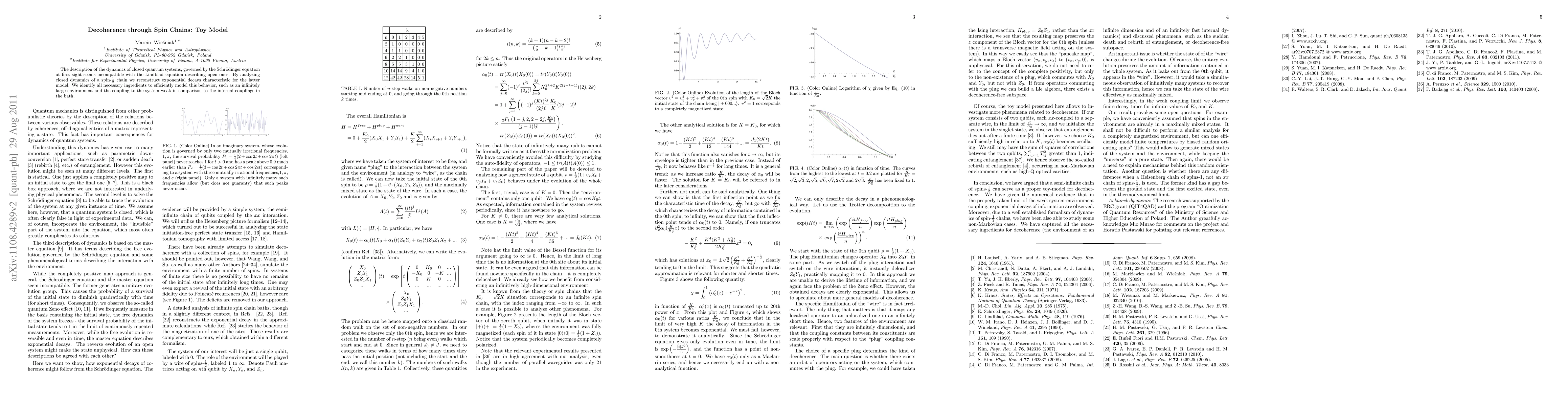 Researchers develop a toy model to describe how quantum systems lose their coherence through spin chains, shedding light on the behavior of open quantum systems.