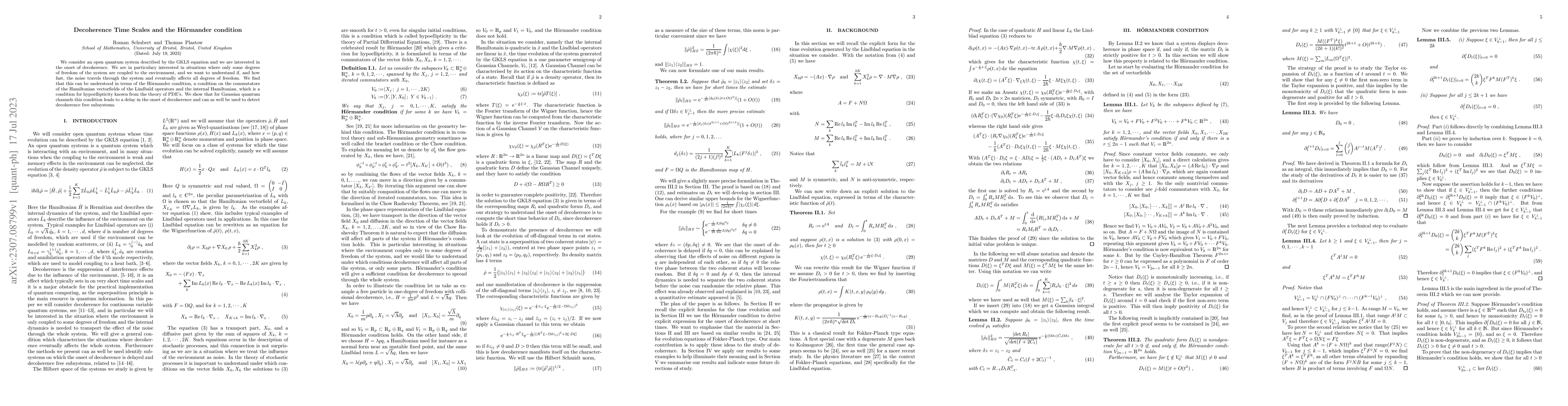 We consider an open quantum system described by the GKLS equation and we are interested in the onset of decoherence. We are in particulary interested in situations where only some degrees of freedom of the system are coupled to the environment, and we want to understand if, and how fast, the noise travels through the system and eventually affects all degrees of freedom. We find that this can be understood in terms of the H\"ormander condition, a condition on the commutators of the Hamiltonian vectorfields of the Lindblad operators and the internal Hamiltonian, which is a condition for hypoellipticity known from the theory of PDE's. We show that for Gaussian quantum channels this condition leads to a delay in the onset of decoherence and can as well be used to detect decoherence free subsystems.