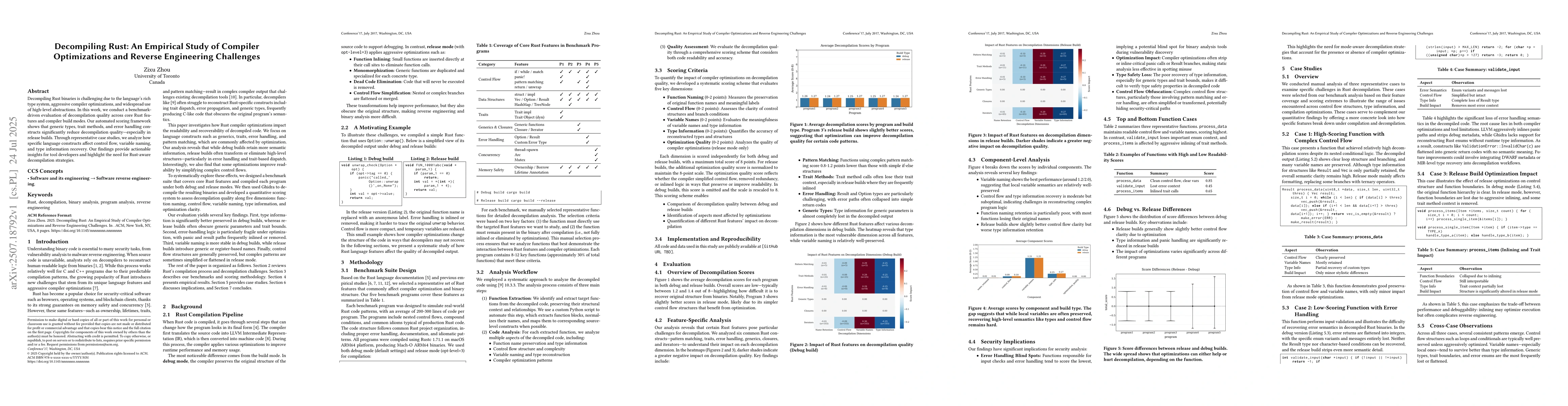 Decompiling Rust binaries is challenging due to the language's rich type system, aggressive compiler optimizations, and widespread use of high-level abstractions. In this work, we conduct a benchmark-driven evaluation of decompilation quality across core Rust features and compiler build modes. Our automated scoring framework shows that generic types, trait methods, and error handling constructs significantly reduce decompilation quality, especially in release builds. Through representative case studies, we analyze how specific language constructs affect control flow, variable naming, and type information recovery. Our findings provide actionable insights for tool developers and highlight the need for Rust-aware decompilation strategies.
