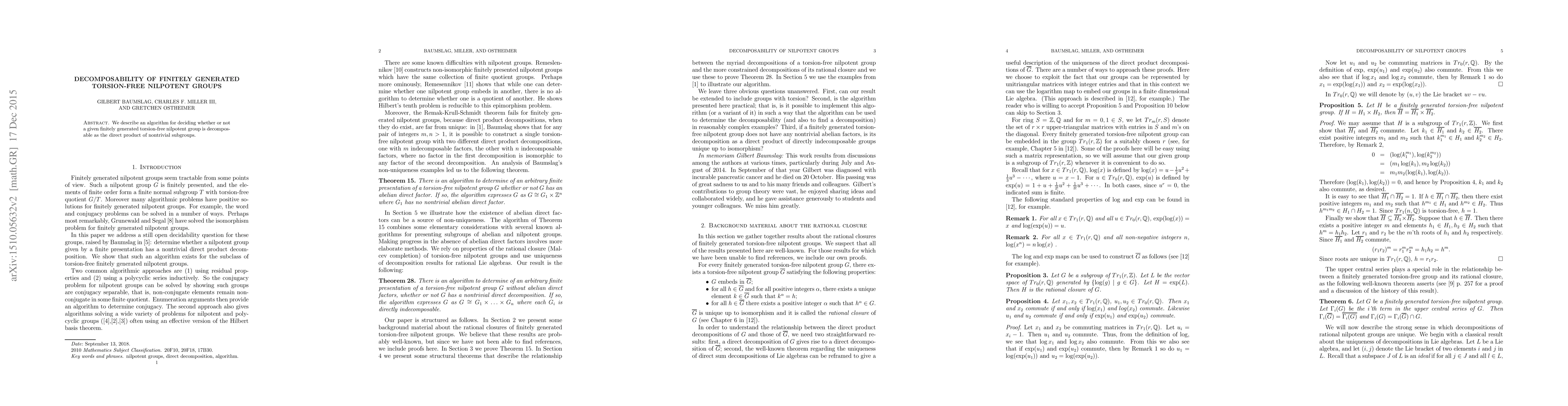 Summary: This paper presents an algorithm to determine if a finitely generated torsion-free nilpotent group can be decomposed into a direct product of nontrivial subgroups, providing a structured method for analyzing such group structures.