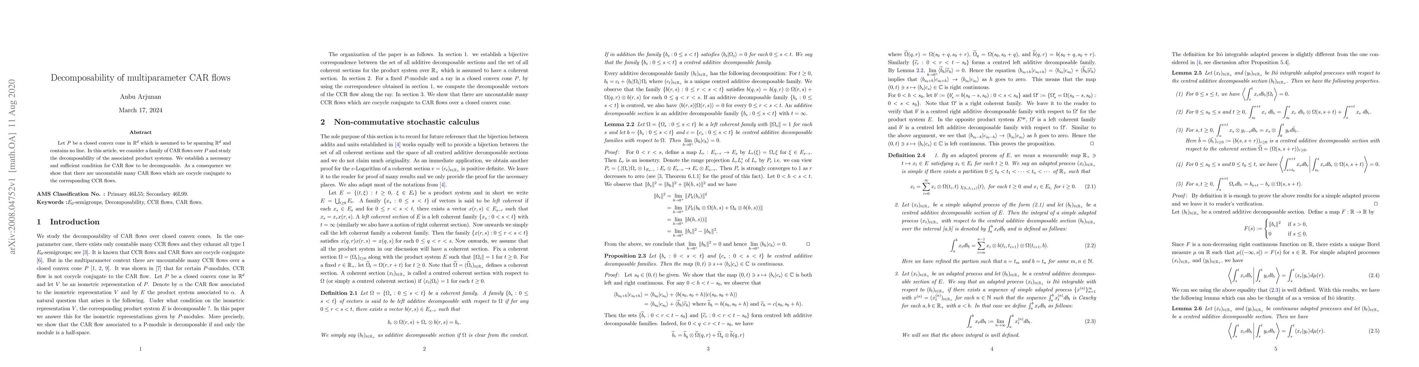 This paper investigates the decomposability of CAR flows over a spanning, line-free closed convex cone in $\mathbb{R}^d$. It establishes a necessary and sufficient condition for decomposability and demonstrates that there exist uncountably many CAR flows cocycle conjugate to CCR flows.
