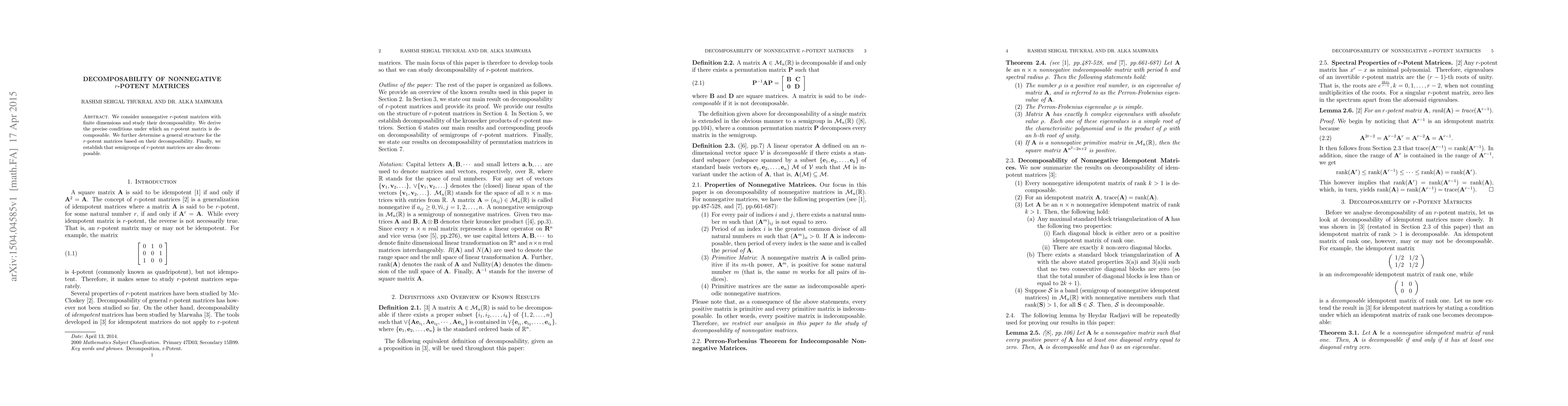 This paper investigates the decomposability of nonnegative r-potent matrices, deriving conditions for decomposability and identifying a general structural form. It also proves that semigroups of r-potent matrices share the same decomposability properties.