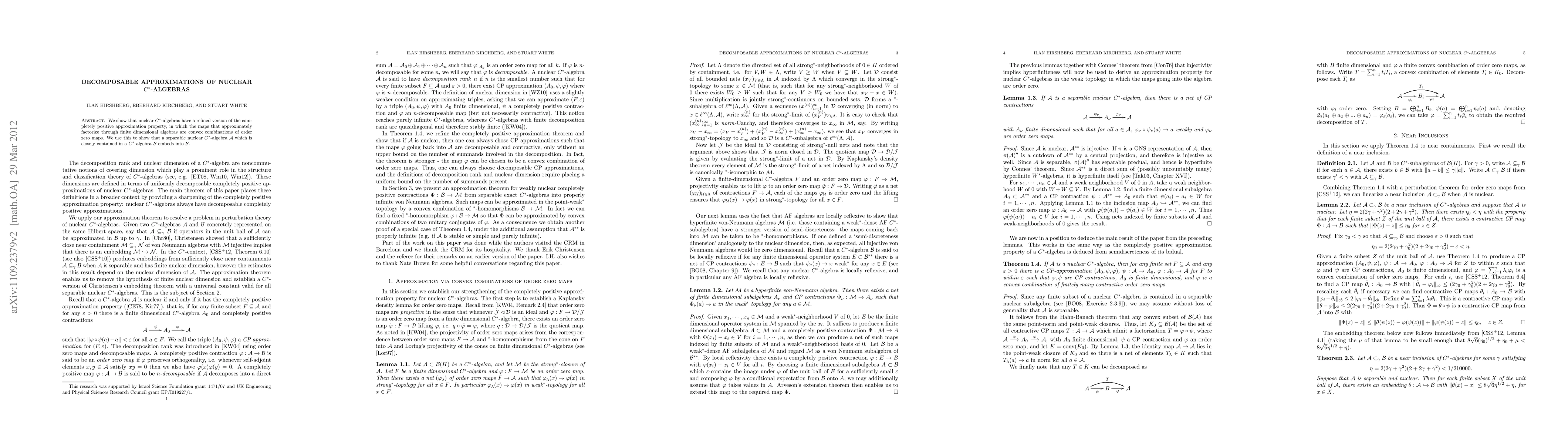 Summary: Nuclear C*-algebras exhibit a refined completely positive approximation property where factorization maps are convex combinations of order zero maps. This property allows for the embedding of separable nuclear C*-algebras into larger algebras in which they are closely contained.