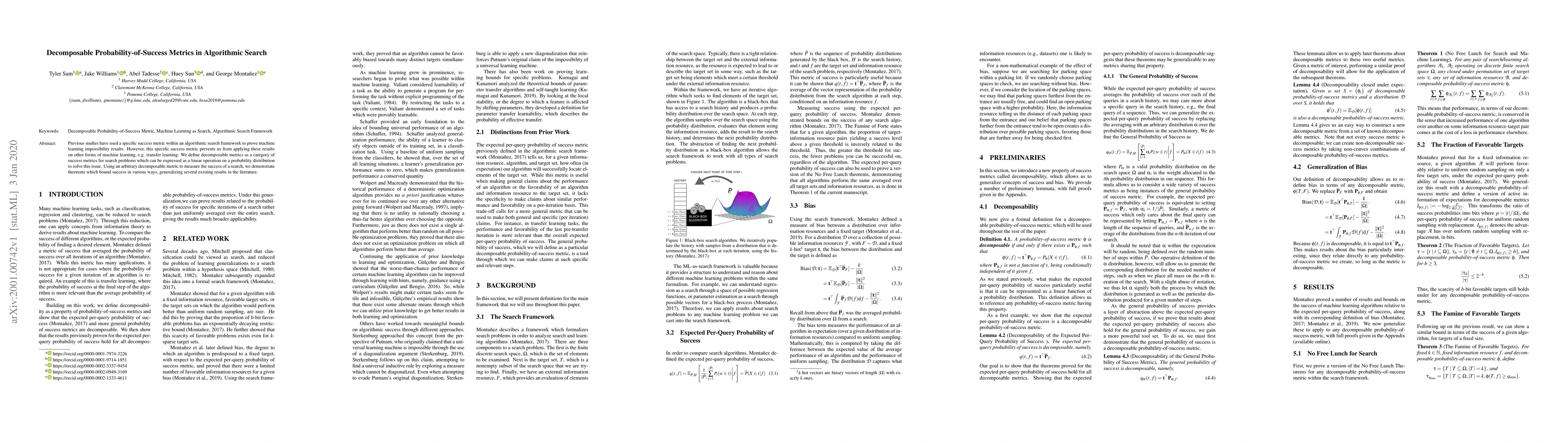 Researchers introduce a new category of success metrics for algorithmic search problems called decomposable metrics, which can be expressed as linear operations on probability distributions, allowing for more flexibility in machine learning applications.