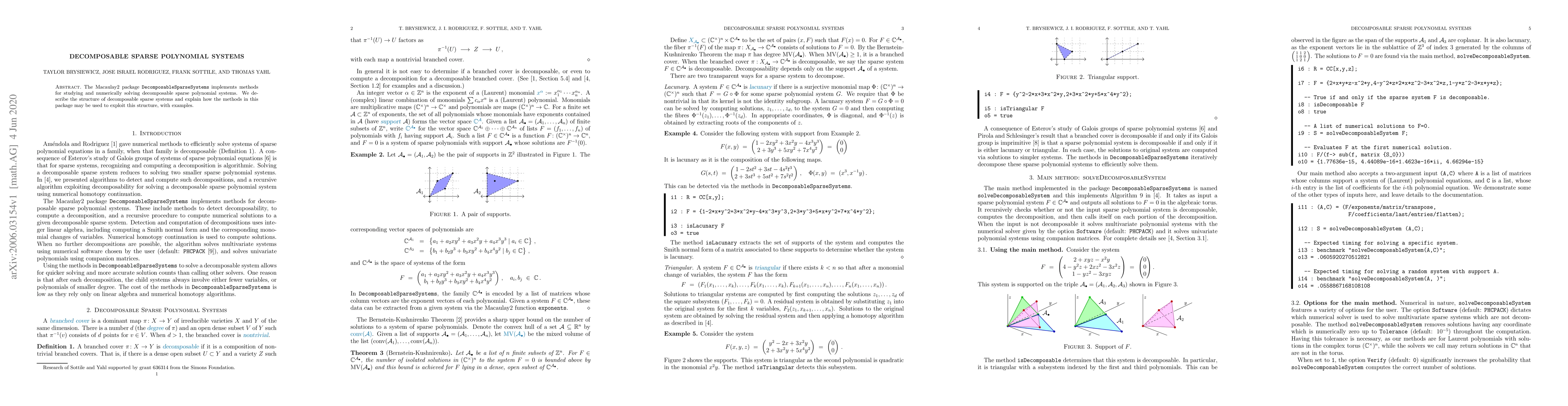 Summary: The paper introduces a Macaulay2 package for studying and solving decomposable sparse polynomial systems, detailing their structure and demonstrating methods to exploit this structure for efficient numerical solutions. Examples are provided to illustrate the practical application of these methods.
