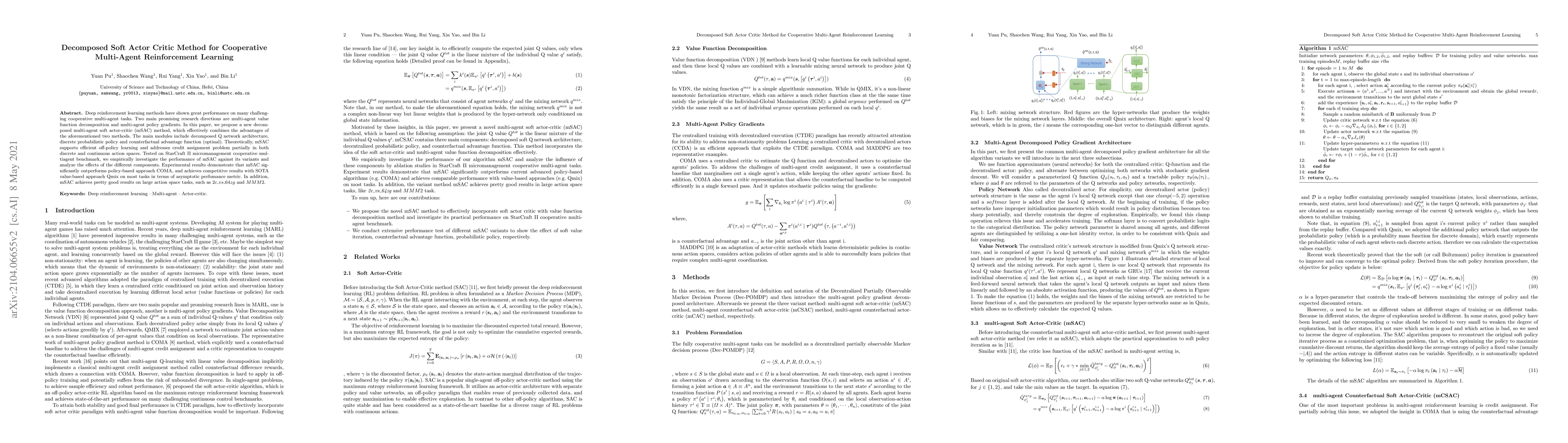 This paper introduces a decomposed multi-agent soft actor-critic (mSAC) method that combines value function decomposition with multi-agent policy gradients, achieving superior performance on cooperative multi-agent tasks. Experimental results show mSAC outperforms COMA and competes with Qmix on various StarCraft II benchmarks.