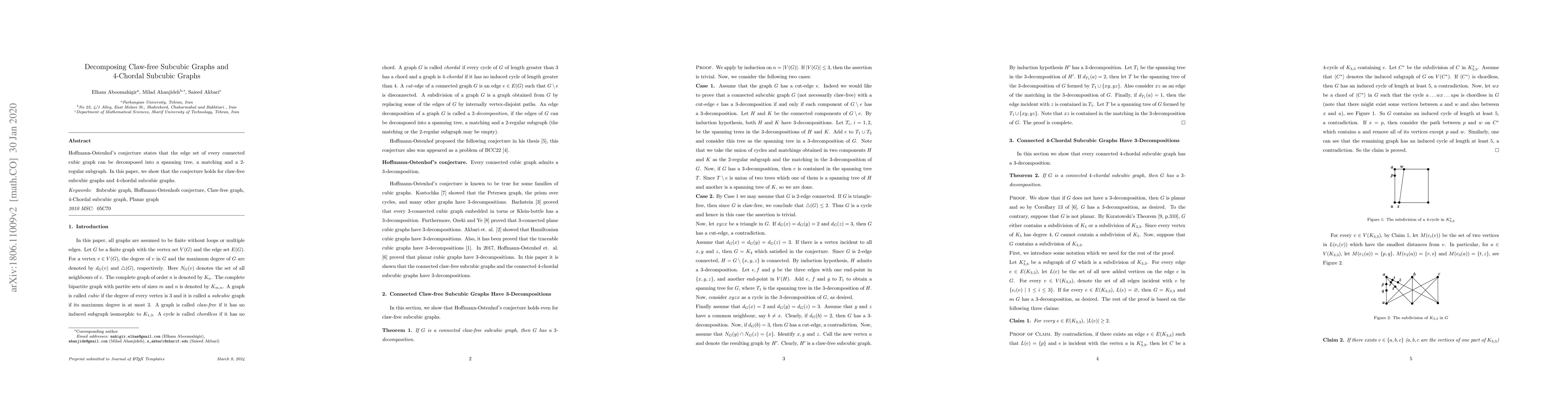 This paper proves Hoffmann-Ostenhof's Conjecture for claw-free subcubic graphs and $4$-chordal subcubic graphs, demonstrating that their edge sets can be decomposed into a spanning tree, a matching, and a $2$-regular subgraph.