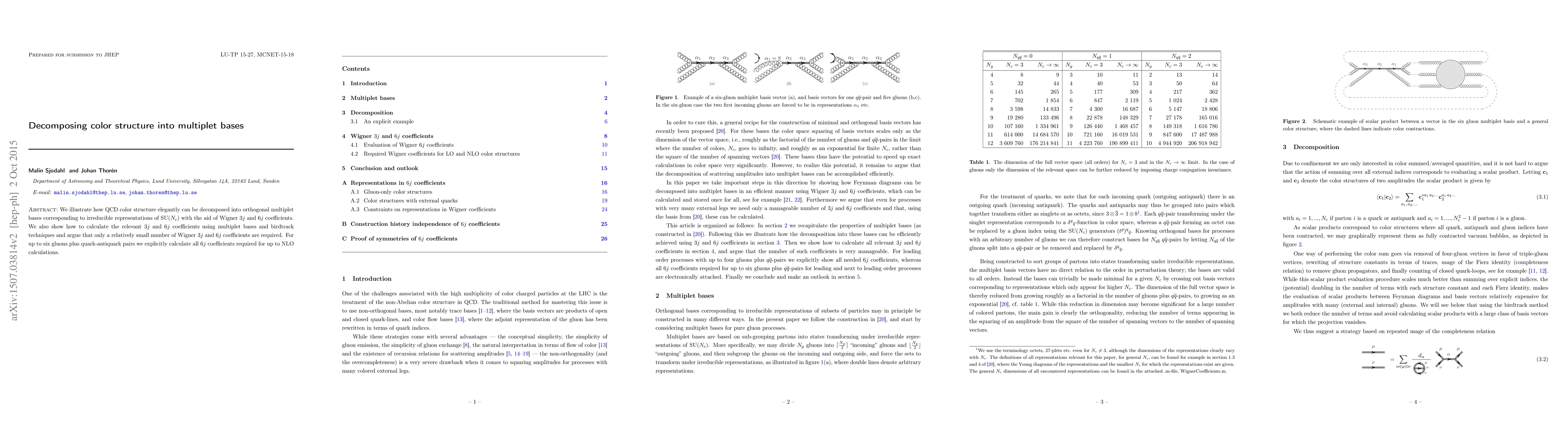 We illustrate how QCD color structure elegantly can be decomposed into orthogonal multiplet bases corresponding to irreducible representations of SU(Nc) with the aid of Wigner 3j and 6j coefficients. We also show how to calculate the relevant 3j and 6j coefficients using multiplet bases and birdtrack techniques and argue that only a relatively small number of Wigner 3j and 6j coefficients are required. For up to six gluons plus quark-antiquark pairs we explicitly calculate all 6j coefficients required for up to NLO calculations.