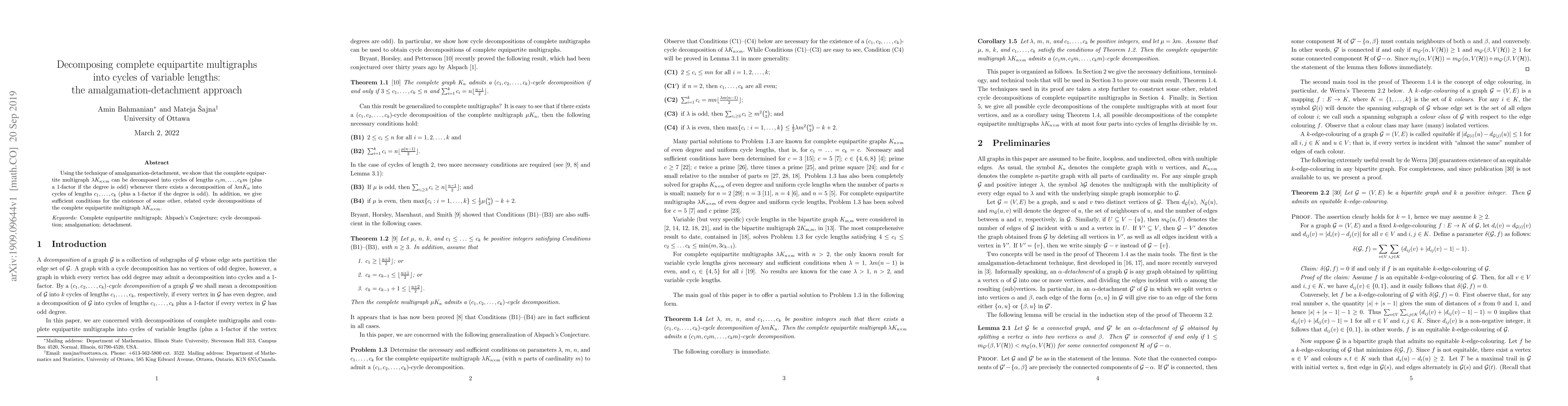 This paper demonstrates the decomposition of the complete equipartite multigraph $\lambda K_{n\times m}$ into cycles of variable lengths using the amalgamation-detachment technique, provided that $\lambda m K_n$ can be similarly decomposed. It also provides sufficient conditions for other related cycle decompositions.