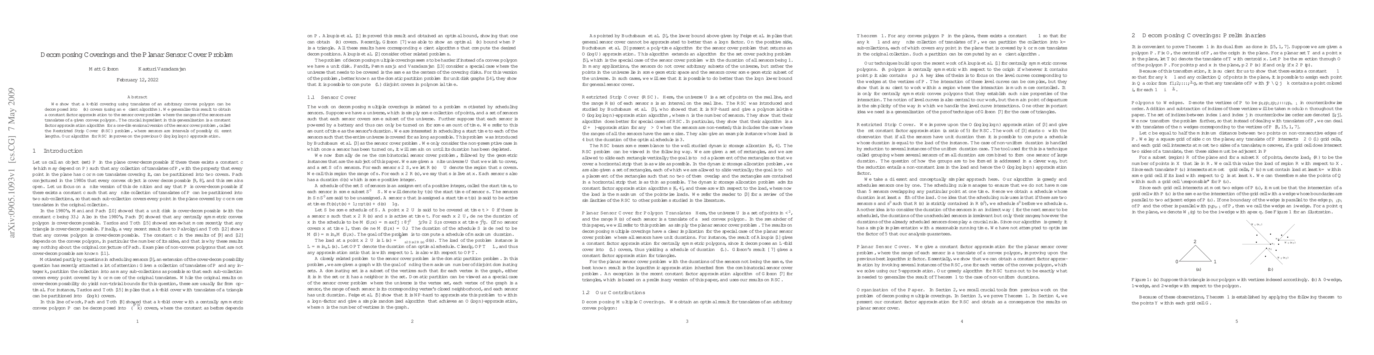 A new algorithm can decompose a k-fold covering into Omega(k) covers using an arbitrary convex polygon, solving the sensor cover problem with constant factor approximation.