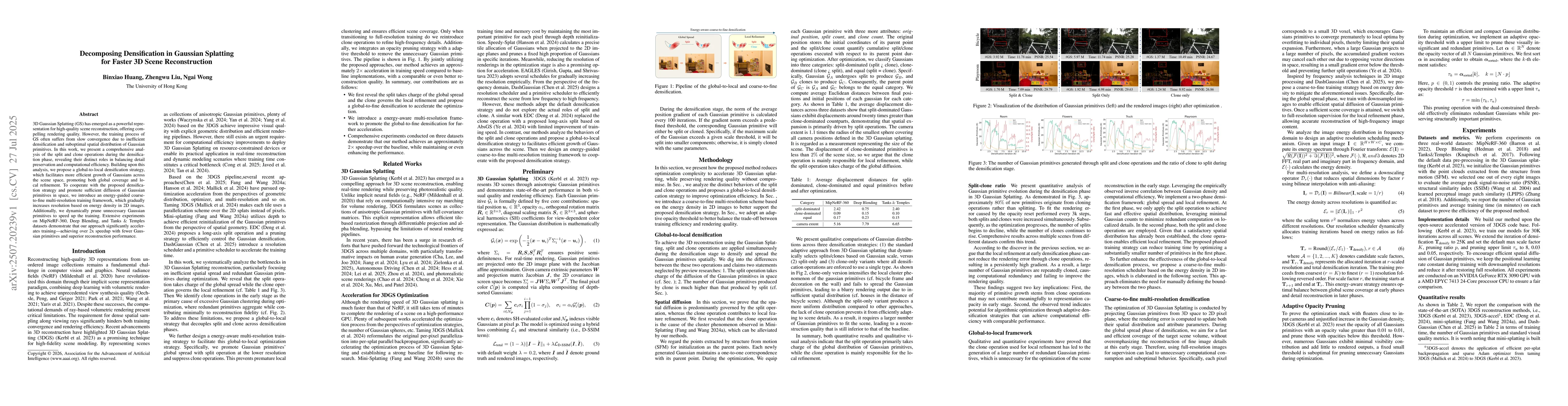 3D Gaussian Splatting (GS) has emerged as a powerful representation for high-quality scene reconstruction, offering compelling rendering quality. However, the training process of GS often suffers from slow convergence due to inefficient densification and suboptimal spatial distribution of Gaussian primitives. In this work, we present a comprehensive analysis of the split and clone operations during the densification phase, revealing their distinct roles in balancing detail preservation and computational efficiency. Building upon this analysis, we propose a global-to-local densification strategy, which facilitates more efficient growth of Gaussians across the scene space, promoting both global coverage and local refinement. To cooperate with the proposed densification strategy and promote sufficient diffusion of Gaussian primitives in space, we introduce an energy-guided coarse-to-fine multi-resolution training framework, which gradually increases resolution based on energy density in 2D images. Additionally, we dynamically prune unnecessary Gaussian primitives to speed up the training. Extensive experiments on MipNeRF-360, Deep Blending, and Tanks & Temples datasets demonstrate that our approach significantly accelerates training,achieving over 2x speedup with fewer Gaussian primitives and superior reconstruction performance.