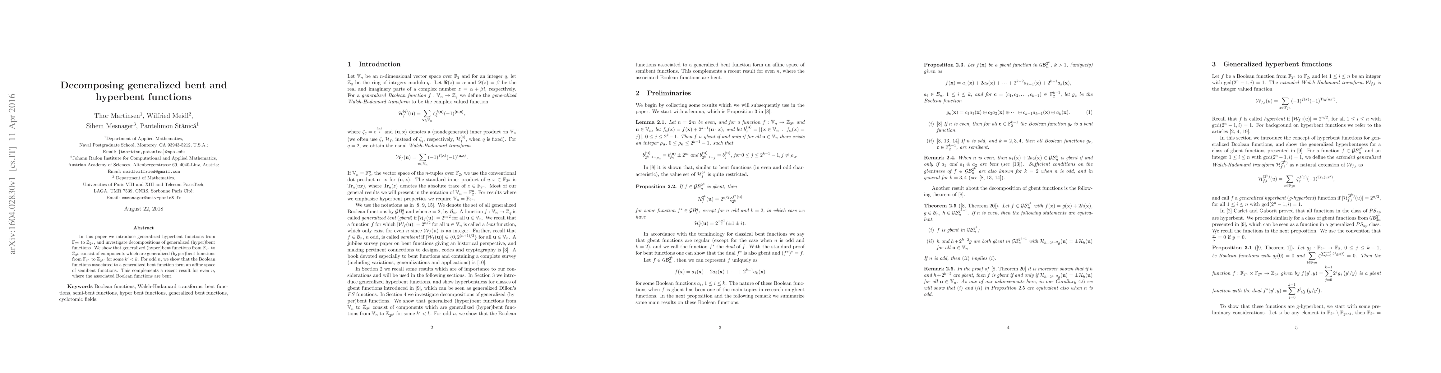 This paper introduces generalized hyperbent functions and explores their decompositions. It demonstrates that these functions decompose into components that are themselves generalized bent functions for smaller $k^\prime < k$. For odd $n$, it shows that Boolean functions associated with generalized bent functions form an affine space of semibent functions, complementing previous results for even $n$.