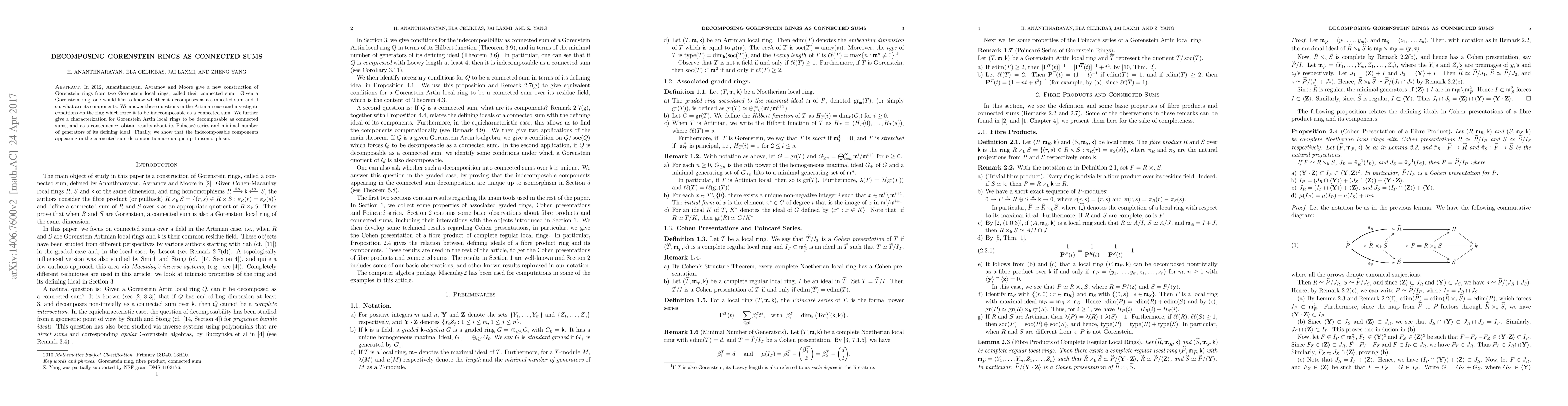 In 2012, Ananthnarayan, Avramov and Moore give a new construction of Gorenstein rings from two Gorenstein local rings, called their connected sum. Given a Gorenstein ring, one would like to know whether it decomposes as a connected sum and if so, what are its components. We answer these questions in the Artinian case and investigate conditions on the ring which force it to be indecomposable as a connected sum. We further give a characterization for Gorenstein Artin local rings to be decomposable as connected sums, and as a consequence, obtain results about its Poincare series and minimal number of generators of its defining ideal. Finally, in the graded case, we show that the indecomposable components appearing in the connected sum decomposition are unique up to isomorphism.