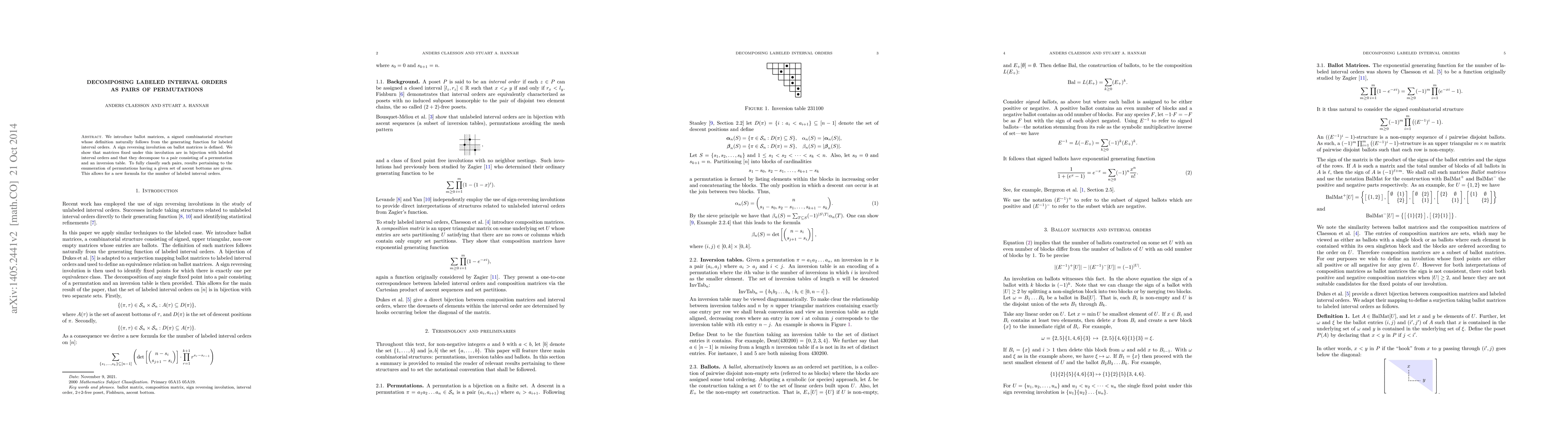 Researchers introduce ballot matrices to classify labeled interval orders, showing a bijection with permutations and inversion tables, leading to a new formula for the number of labeled interval orders.