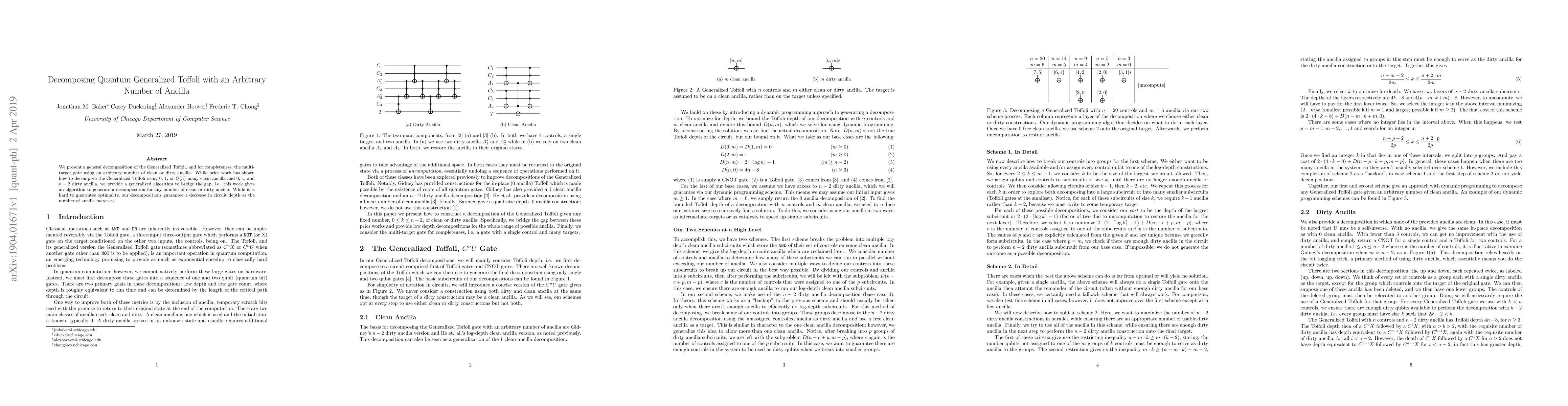 This paper presents a generalized algorithm for decomposing the Generalized Toffoli gate using any number of clean or dirty ancilla, bridging the gap between previous decompositions. The proposed method ensures a reduction in circuit depth as the number of ancilla increases, though optimality cannot be guaranteed.