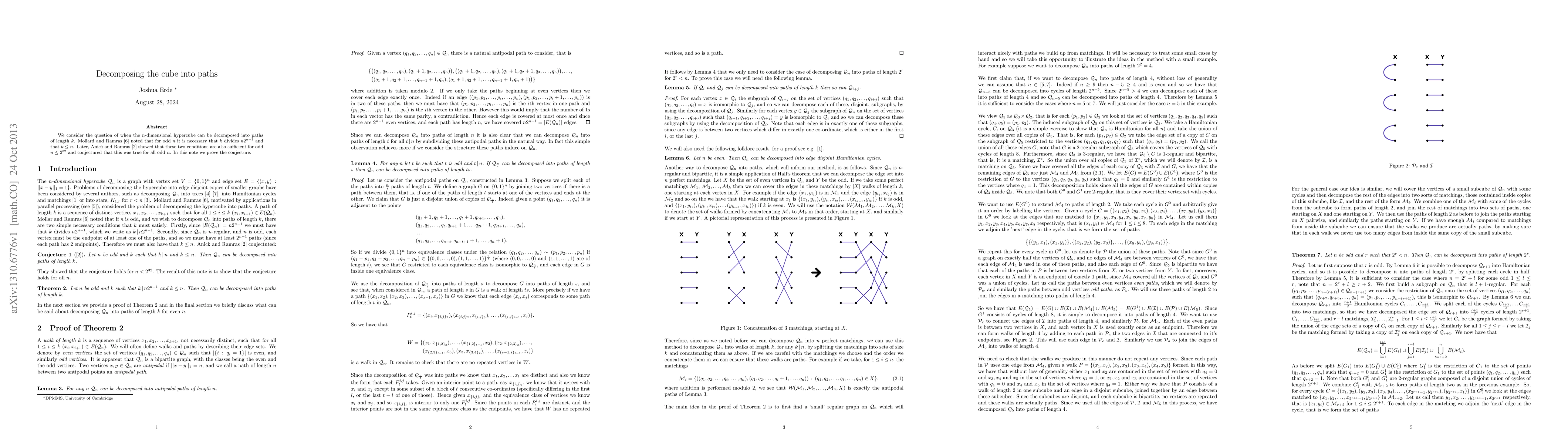 We consider the question of when the $n$-dimensional hypercube can be decomposed into paths of length $k$. Mollard and Ramras \cite{MR2013} noted that for odd $n$ it is necessary that $k$ divides $n2^{n-1}$ and that $k\leq n$. Later, Anick and Ramras \cite{AR2013} showed that these two conditions are also sufficient for odd $n \leq 2^{32}$ and conjectured that this was true for all odd $n$. In this note we prove the conjecture.