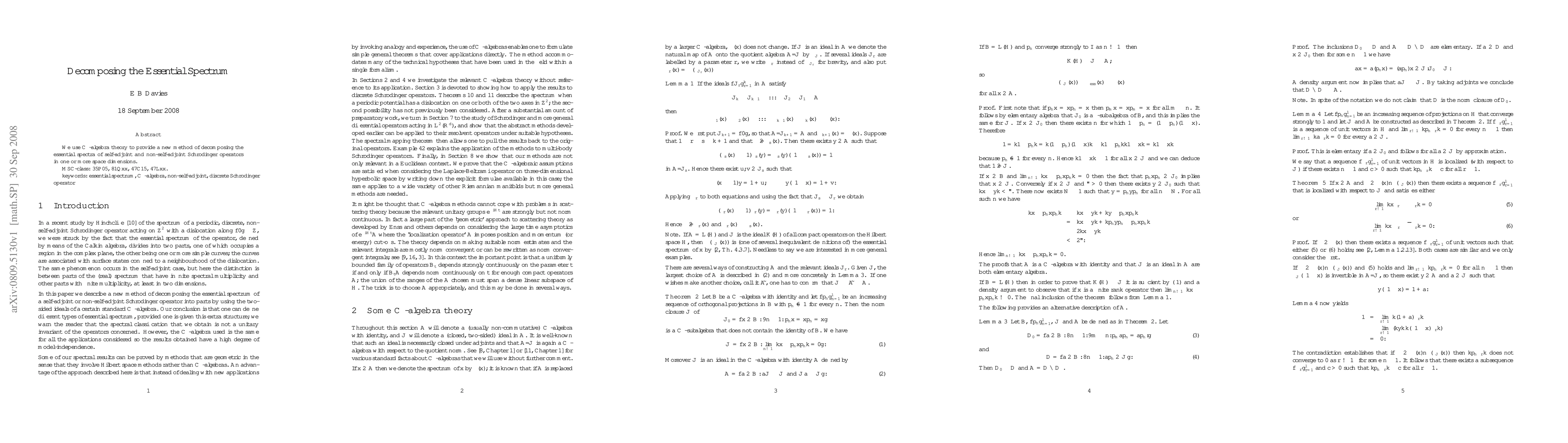 We use C*-algebra theory to provide a new method of decomposing the eseential spectra of self-adjoint and non-self-adjoint Schrodinger operators in one or more space dimensions.