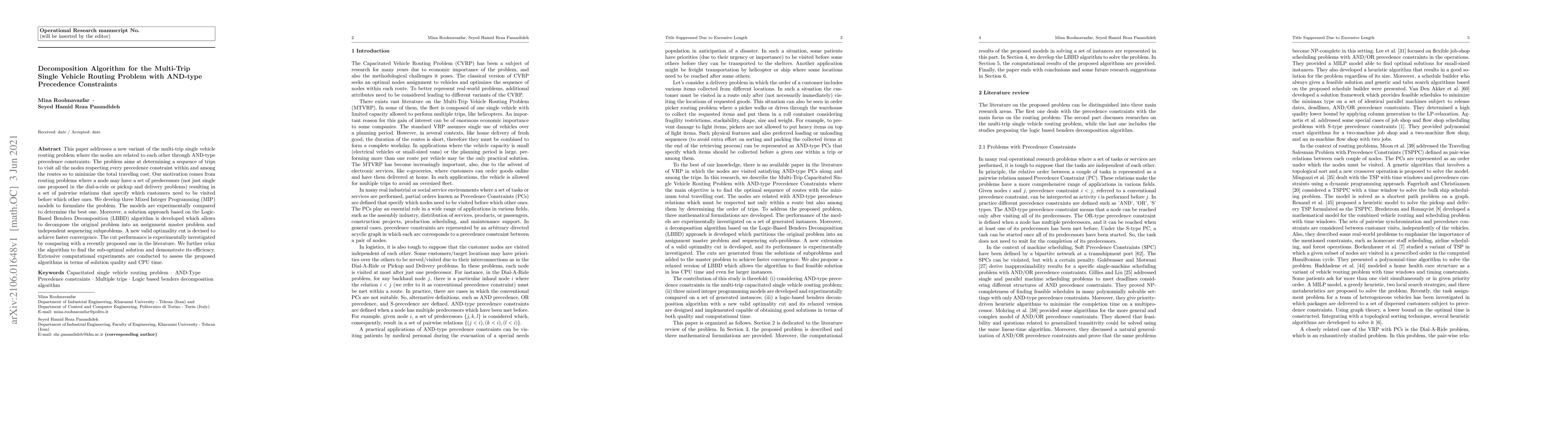 This paper addresses a new variant of the multi-trip single vehicle routing problem where the nodes are related to each other through AND-type precedence constraints. The problem aims at determining a sequence of trips to visit all the nodes respecting every precedence constraint within and among the routes so to minimize the total traveling cost. Our motivation comes from routing problems where a node may have a set of predecessors (not just single one proposed in the dial-a-ride or pickup and delivery problems) resulting in a set of pairwise relations that specify which customers need to be visited before which other ones. We develop three Mixed Integer Programming (MIP) models to formulate the problem. The models are experimentally compared to determine the best one. Moreover, a solution approach based on the Logic-Based Benders Decomposition (LBBD) algorithm is developed which allows to decompose the original problem into an assignment master problem and independent sequencing subproblems. A new valid optimality cut is devised to achieve faster convergence. The cut performance is experimentally investigated by comparing with a recently proposed one in the literature. We further relax the algorithm to find the sub-optimal solution and demonstrate its efficiency. Extensive computational experiments are conducted to assess the proposed algorithms in terms of solution quality and CPU time.