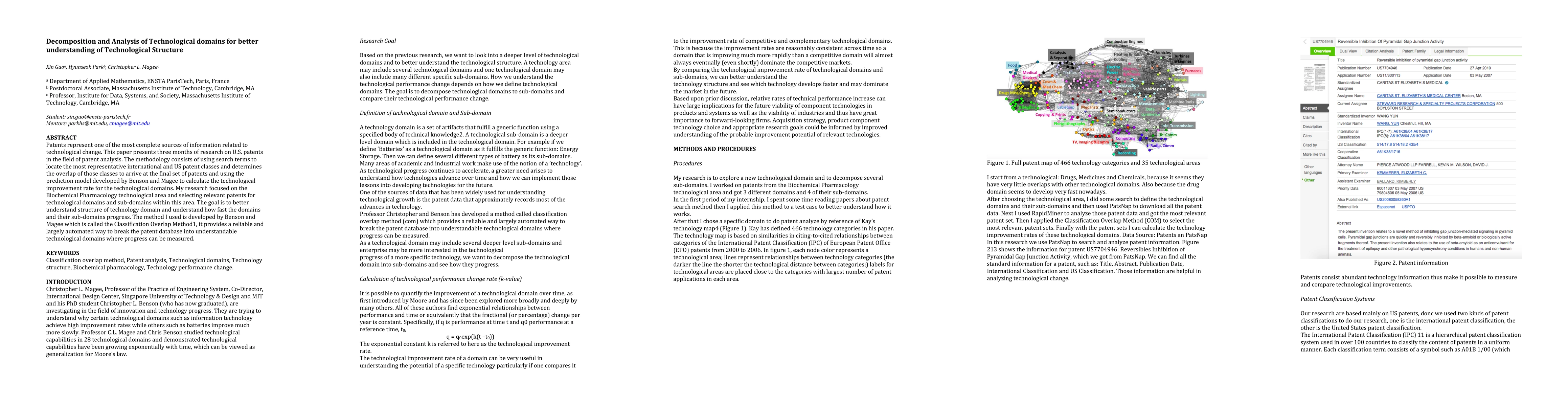 Patents represent one of the most complete sources of information related to technological change. This paper presents three months of research on U.S. patents in the field of patent analysis. The methodology consists of using search terms to locate the most representative international and US patent classes and determines the overlap of those classes to arrive at the final set of patents and using the prediction model developed by Benson and Magee to calculate the technological improvement rate for the technological domains. My research focused on the Biochemical Pharmacology technological area and selecting relevant patents for technological domains and sub-domains within this area. The goal is to better understand structure of technology domain and understand how fast the domains and their sub-domains progress. The method I used is developed by Benson and Magee which is called the Classification Overlap Method1, it provides a reliable and largely automated way to break the patent database into understandable technological domains where progress can be measured.