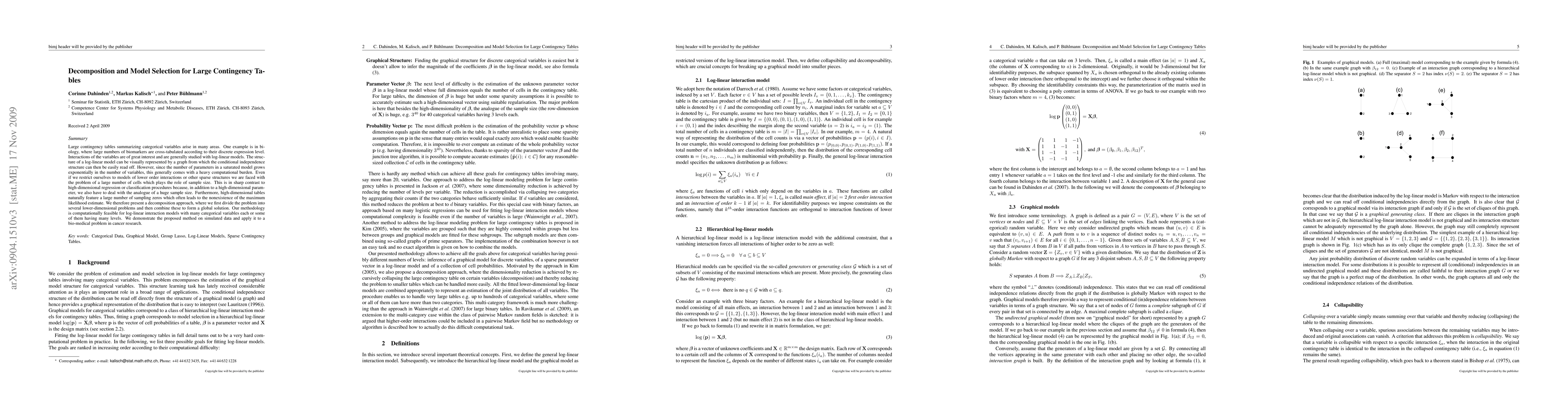 Large contingency tables summarizing categorical variables arise in many areas. For example in biology when a large number of biomarkers are cross-tabulated according to their discrete expression level. Interactions of the variables are generally studied with log-linear models and the structure of a log-linear model can be visually represented by a graph from which the conditional independence structure can then be read off. However, since the number of parameters in a saturated model grows exponentially in the number of variables, this generally comes with a heavy burden as far as computational power is concerned. If we restrict ourselves to models of lower order interactions or other sparse structures we face similar problems as the number of cells remains unchanged. We therefore present a divide-and-conquer approach, where we first divide the problem into several lower-dimensional problems and then combine these to form a global solution. Our methodology is computationally feasible for log-linear interaction modeling with many categorical variables each or some of them having many categories. We demonstrate the proposed method on simulated data and apply it to a bio-medical problem in cancer research.