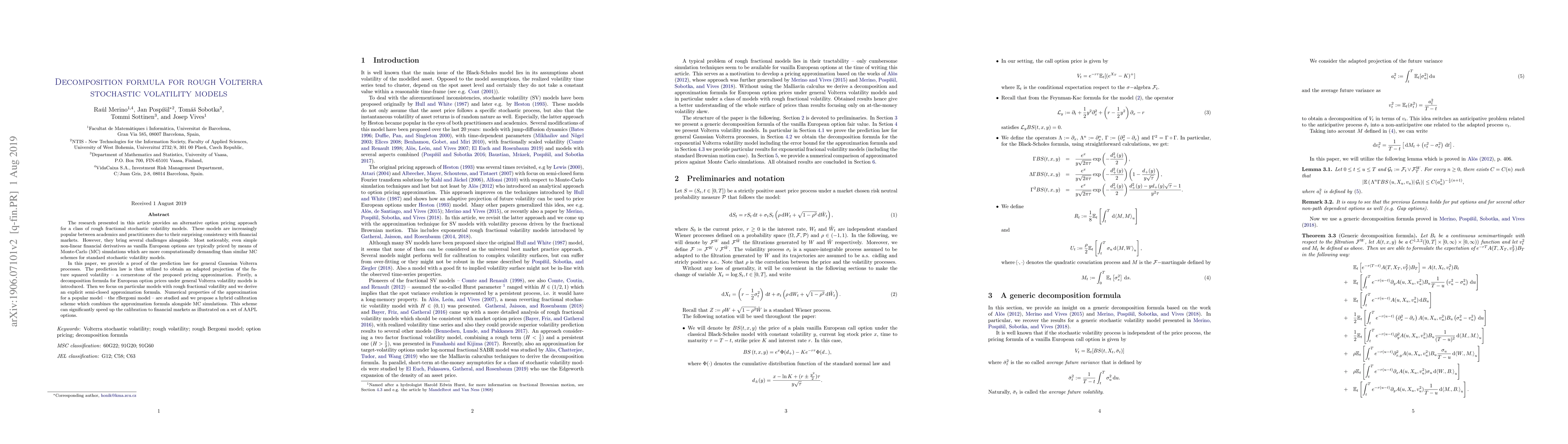 This paper introduces a decomposition formula for pricing European options in rough fractional stochastic volatility models, offering an alternative to computationally expensive Monte-Carlo simulations. It utilizes a prediction law for Gaussian Volterra processes to derive an explicit semi-closed approximation formula, which is tested on the rBergomi model and shown to speed up calibration via a hybrid scheme combining approximation and Monte-Carlo methods.