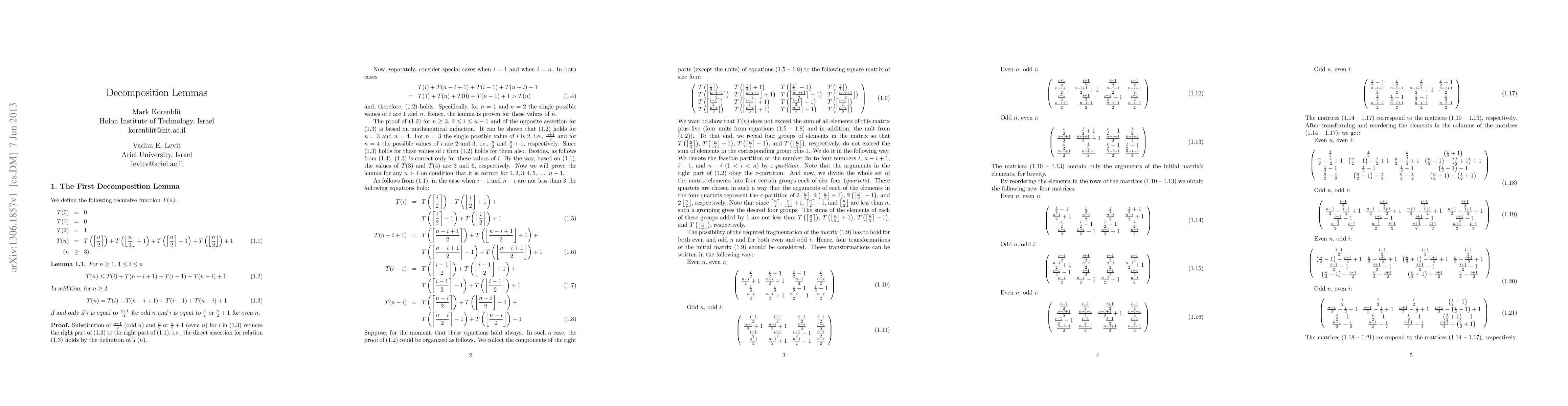 Summary: This paper introduces two recursive functions derived from the decomposition of an interval into four parts, and proves two lemmas that elucidate the properties and characteristics of these functions.