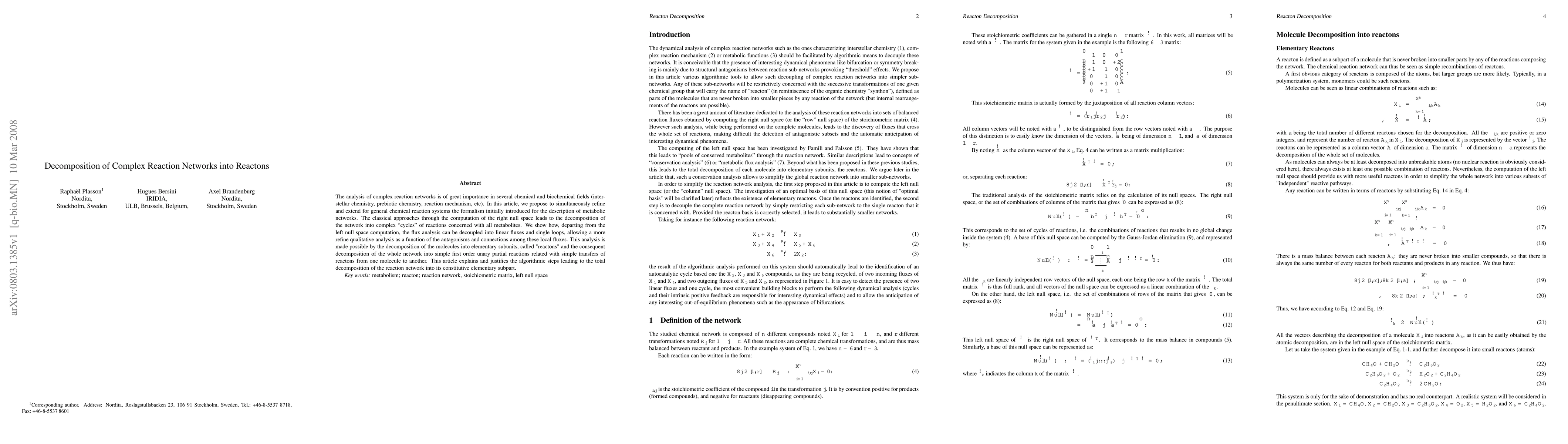 This paper proposes a new method to decompose complex reaction networks into simpler components called 'reactons', allowing for a more refined analysis of chemical reactions.