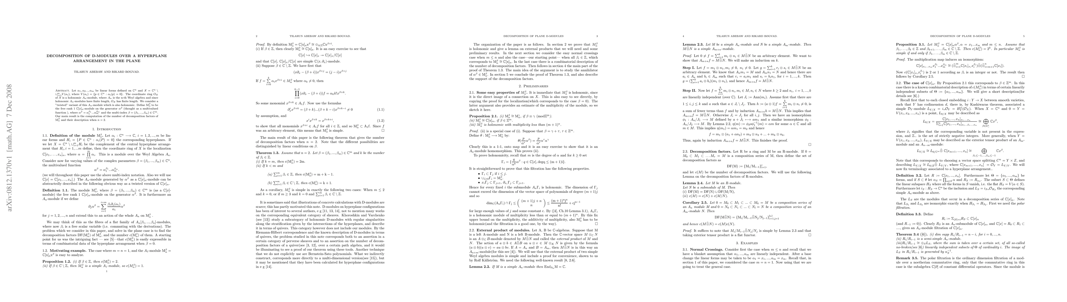 Summary: This paper investigates a D-module resulting from a rank one linear system on the complement of a central plane arrangement, and computes its decomposition series through algebraic techniques in the Weyl algebra.