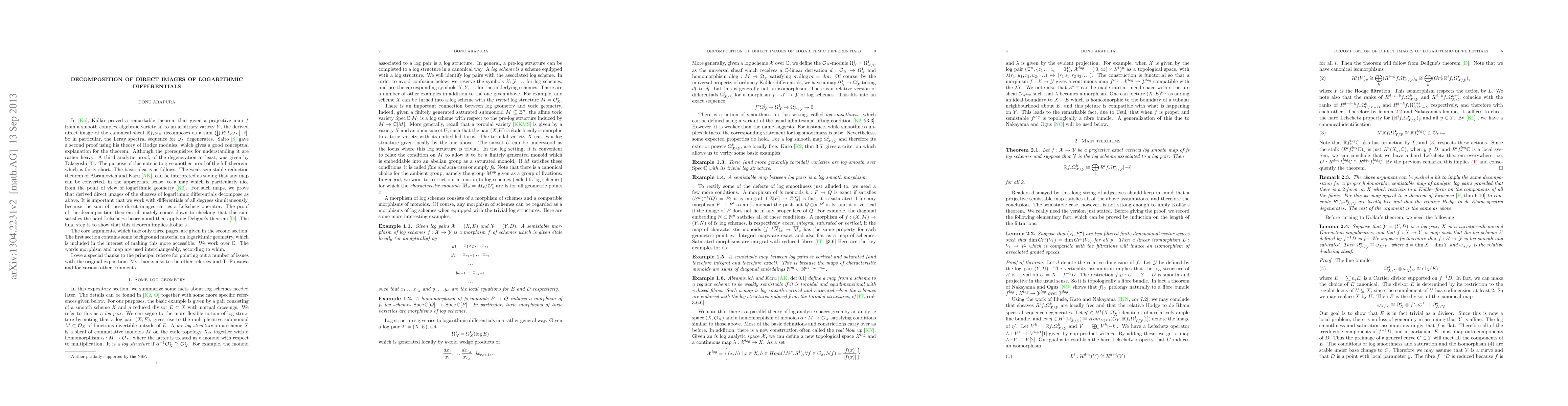 The purpose of this note is to give a short proof of a theorem of Koll\'ar that the derived direct image of the canonical sheaf splits into a sum of its cohomology sheaves. This is deduced from a stronger decomposition theorem for direct images of sheaves of logarithmic differentials, together with the weak semistable reduction theorem.