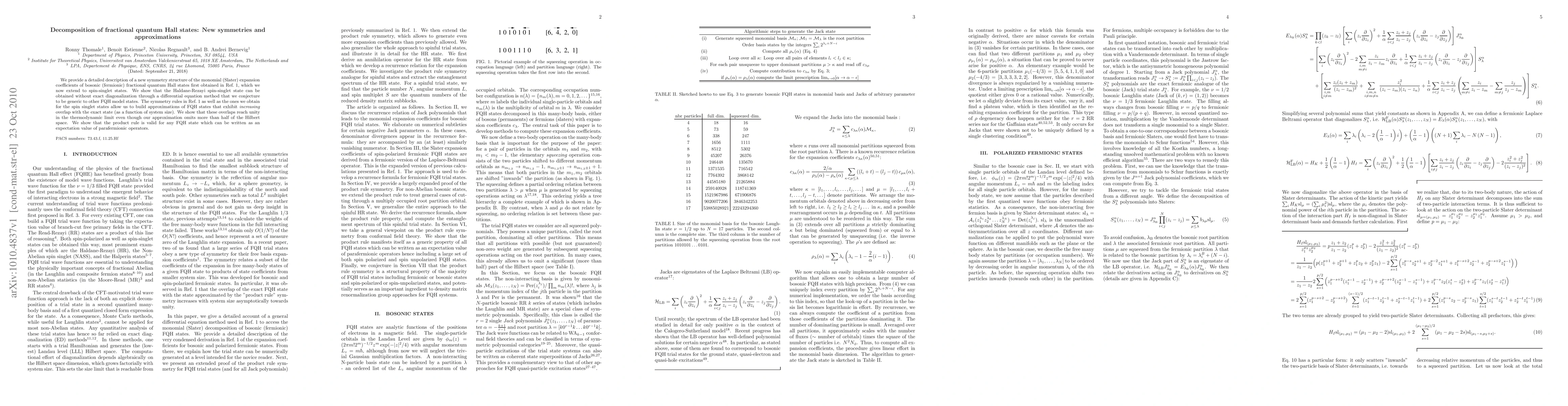 This paper explores new symmetry structures in the expansion coefficients of fractional quantum Hall states, extending these findings to spin-singlet states. It introduces a differential equation method to approximate Haldane-Rezayi states without exact diagonalization, revealing that these approximations converge to the exact state in the thermodynamic limit despite omitting significant portions of the Hilbert space.