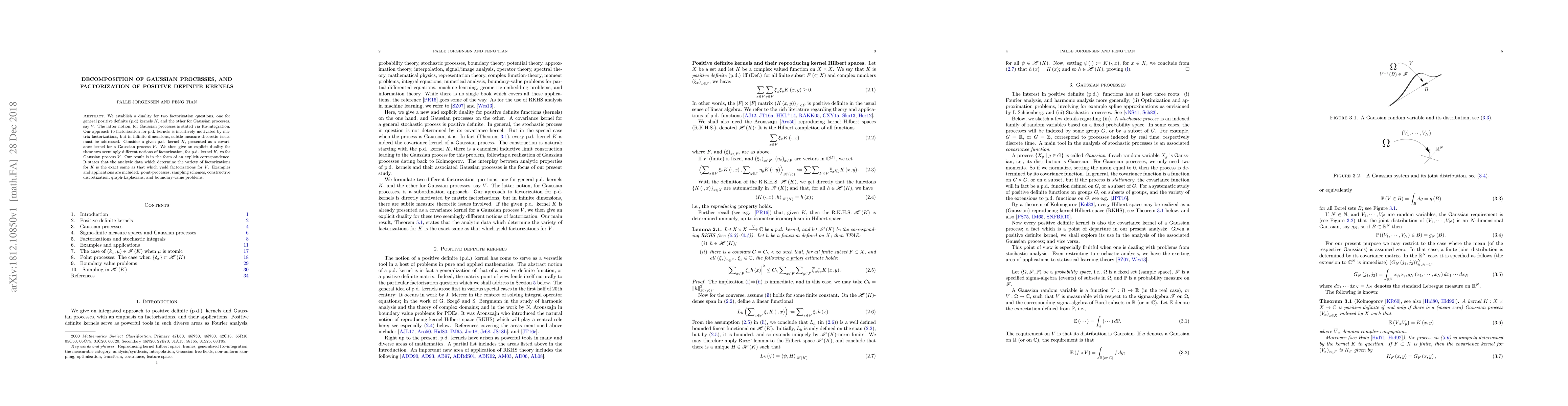 This paper establishes a duality between factorizations of positive definite kernels and Gaussian processes, showing that the analytic data determining factorizations for a kernel also applies to its corresponding Gaussian process. It addresses measure-theoretic subtleties in infinite dimensions and includes applications in point-processes, sampling schemes, and boundary-value problems.