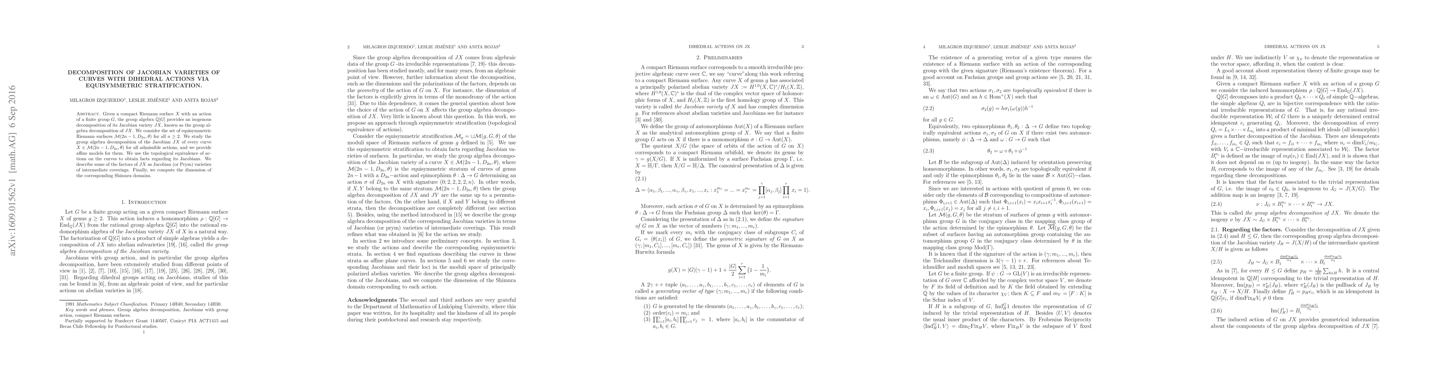 This paper explores the group algebra decomposition of Jacobian varieties for compact Riemann surfaces acted upon by dihedral groups, providing affine models for these decompositions and relating them to intermediate coverings and dimensions of Shimura domains. The study is based on the equisymmetric stratification of Riemann surfaces.