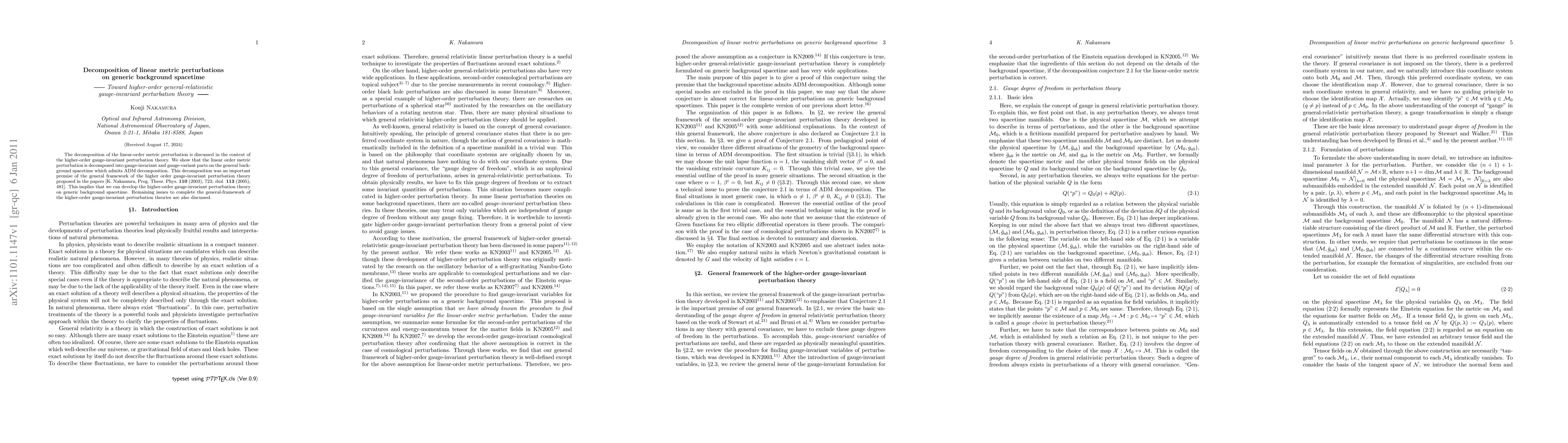 This paper decomposes linear-order metric perturbations into gauge-invariant and gauge-variant components on generic backgrounds, establishing a foundation for higher-order gauge-invariant perturbation theory in general relativity. The remaining challenges to fully develop this theory are also addressed.