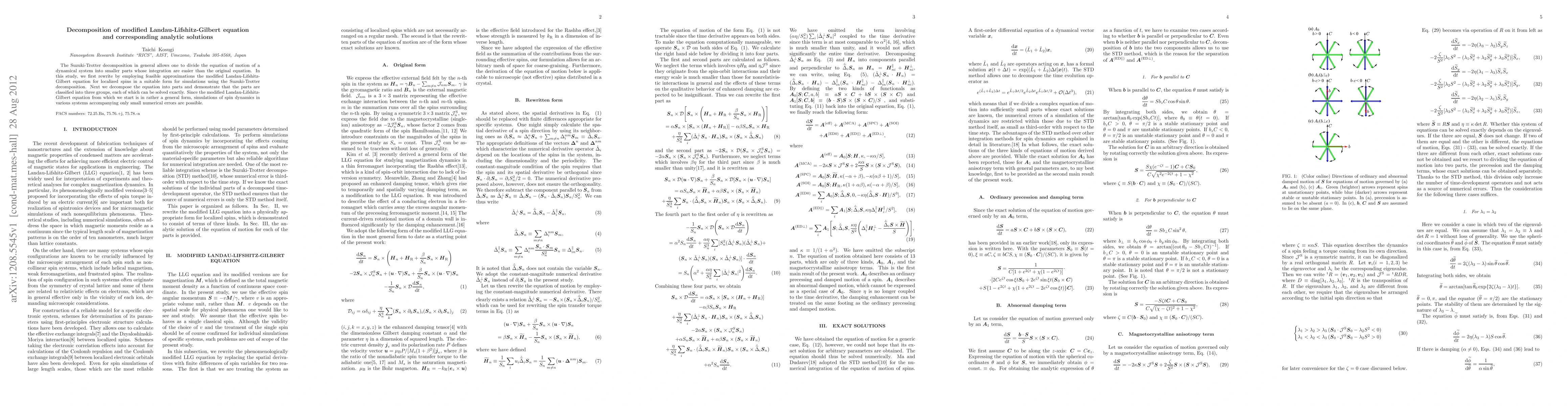 This paper employs the Suzuki-Trotter decomposition to simplify the modified Landau-Lifshitz-Gilbert equation for localized spins, breaking it into exactly solvable parts. The approach allows for accurate simulations of spin dynamics in various systems with minimal numerical errors.