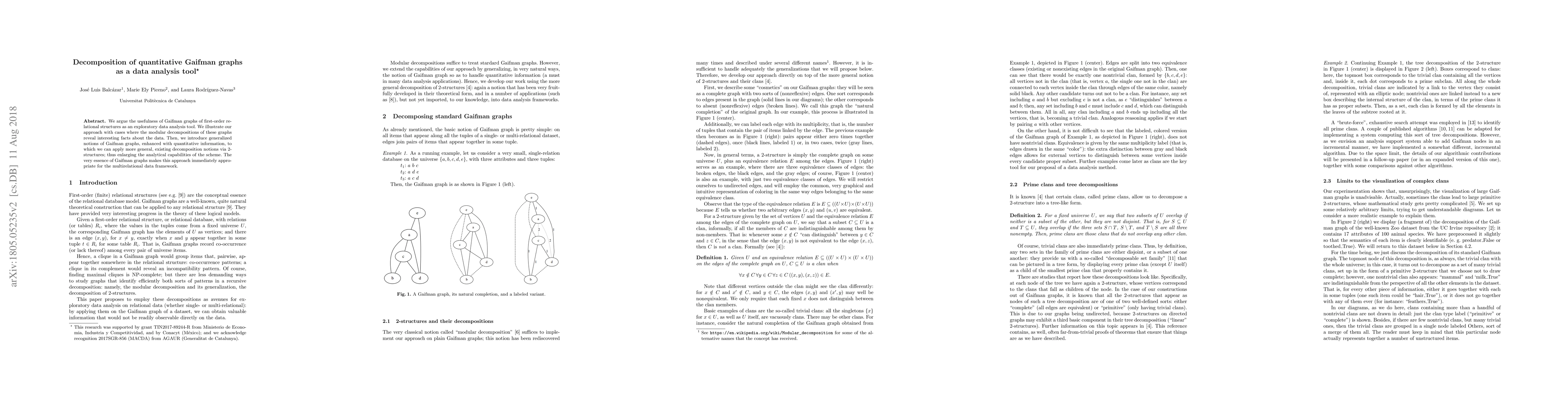 We argue the usefulness of Gaifman graphs of first-order relational structures as an exploratory data analysis tool. We illustrate our approach with cases where the modular decompositions of these graphs reveal interesting facts about the data. Then, we introduce generalized notions of Gaifman graphs, enhanced with quantitative information, to which we can apply more general, existing decomposition notions via 2-structures; thus enlarging the analytical capabilities of the scheme. The very essence of Gaifman graphs makes this approach immediately appropriate for the multirelational data framework.